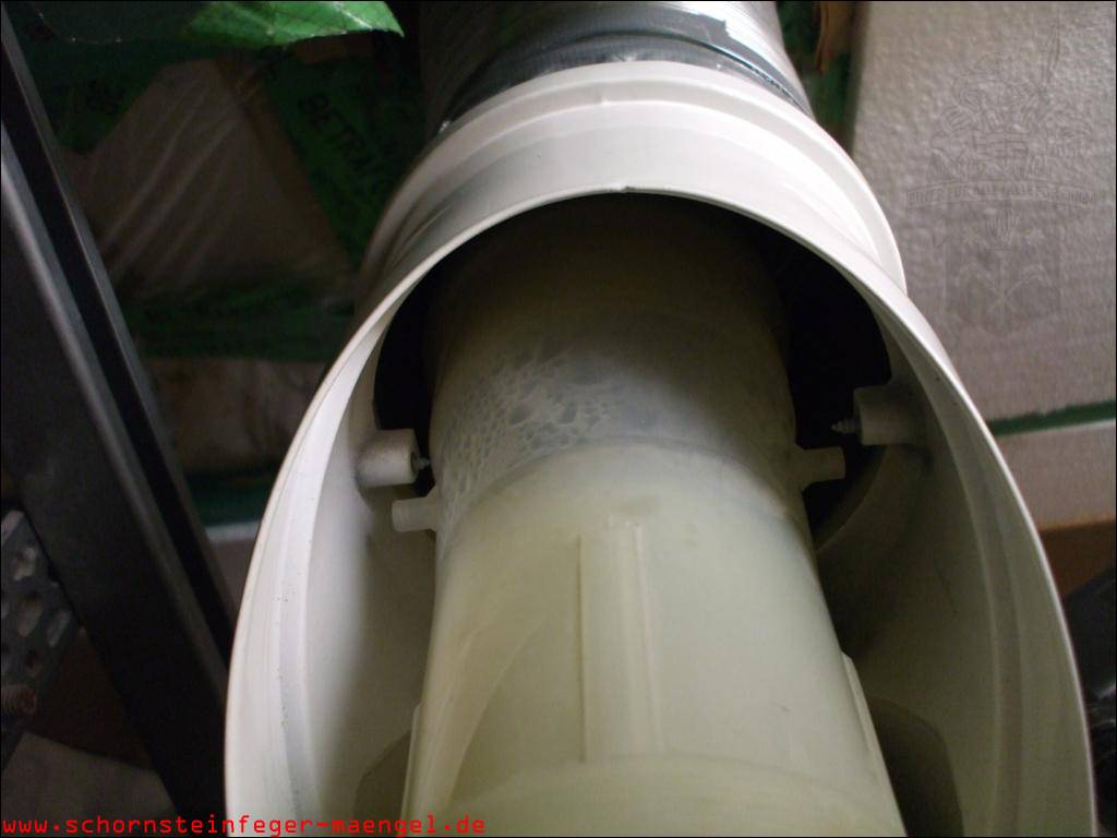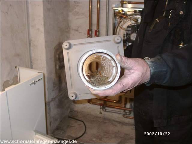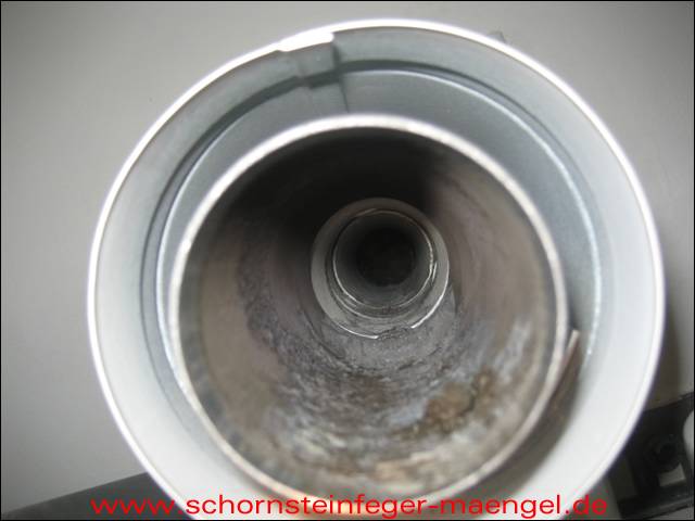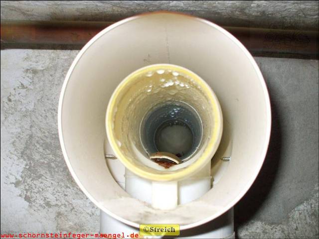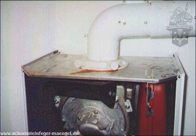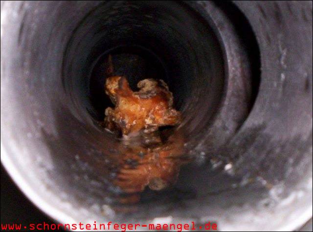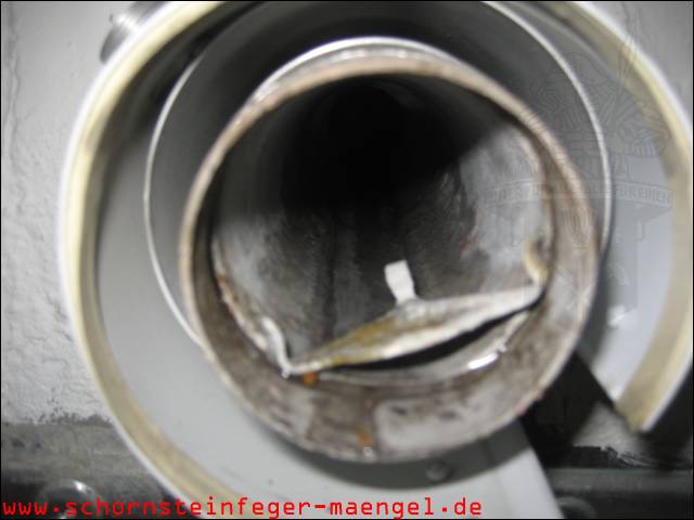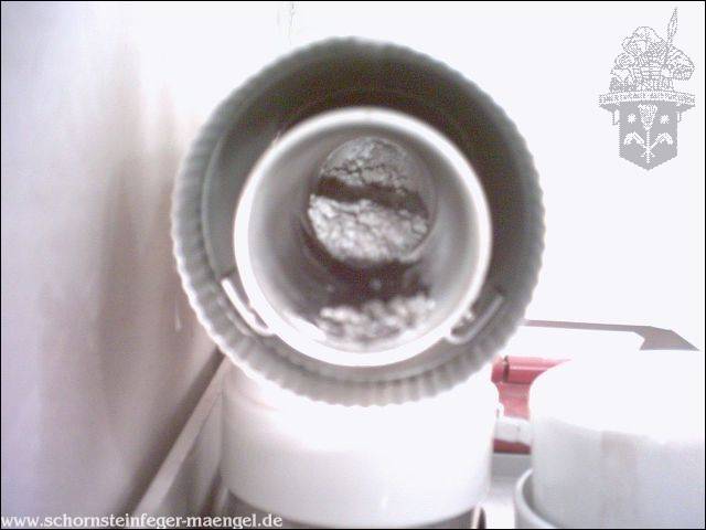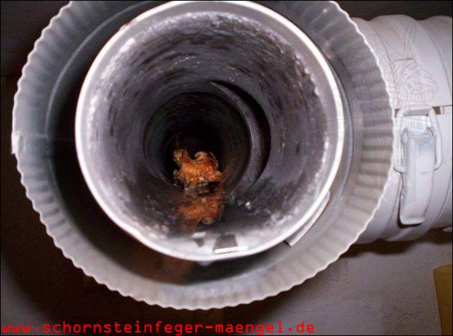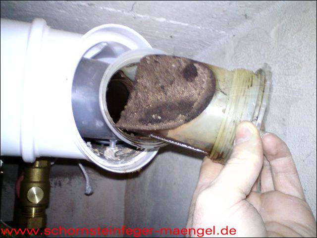 Niedertemperaturkessel: sehr stark verschmutzte bzw. verkalkte Abgasleitung! |