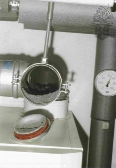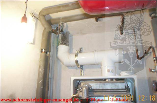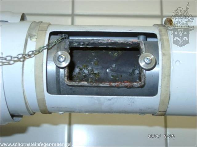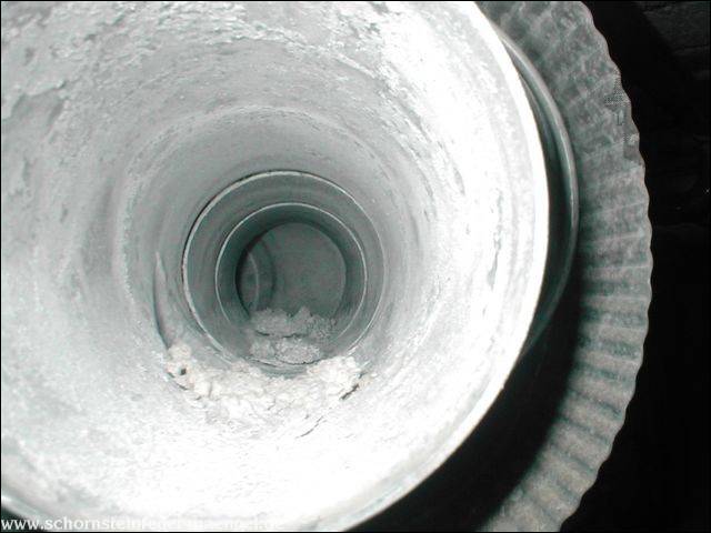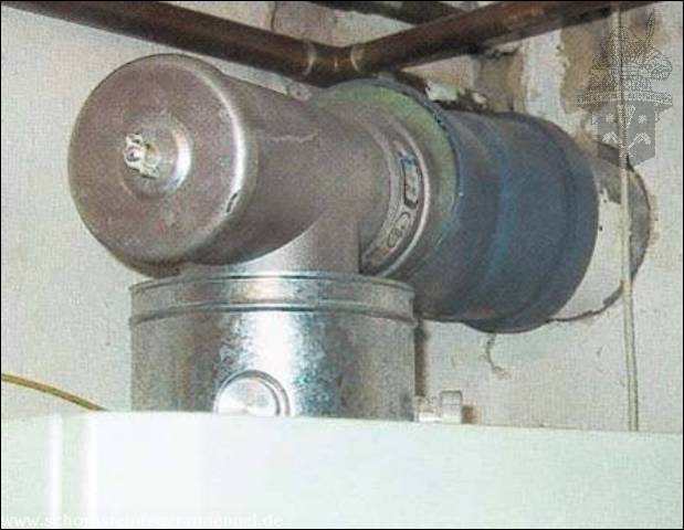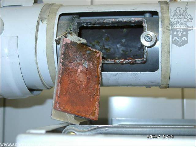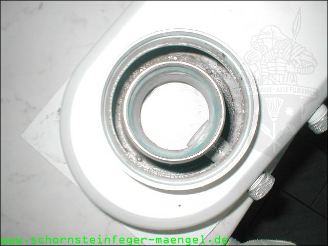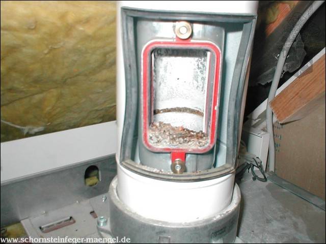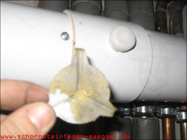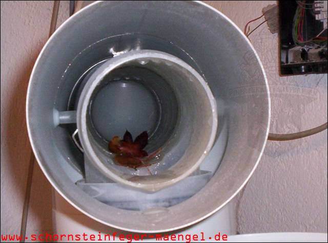Niedertemperaturkessel: sehr stark verschmutzte bzw. verkalkte Abgasleitung! |