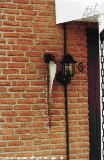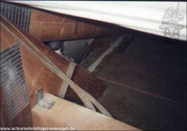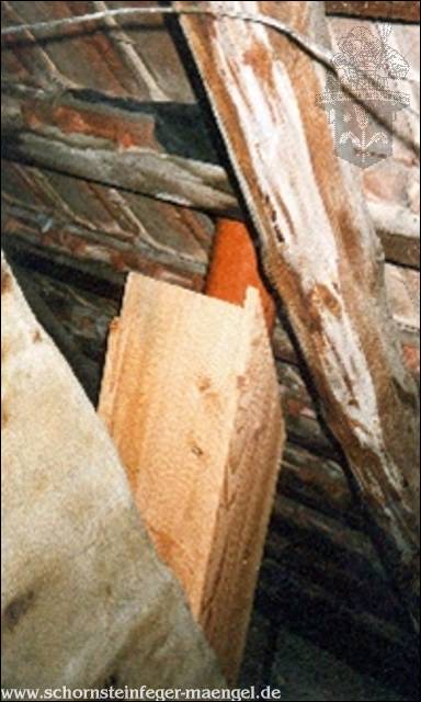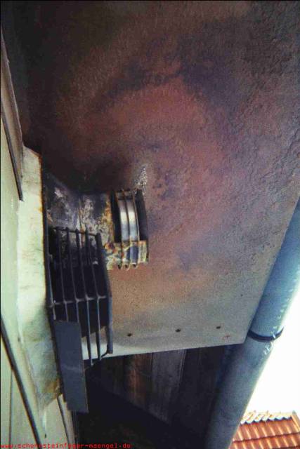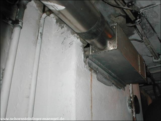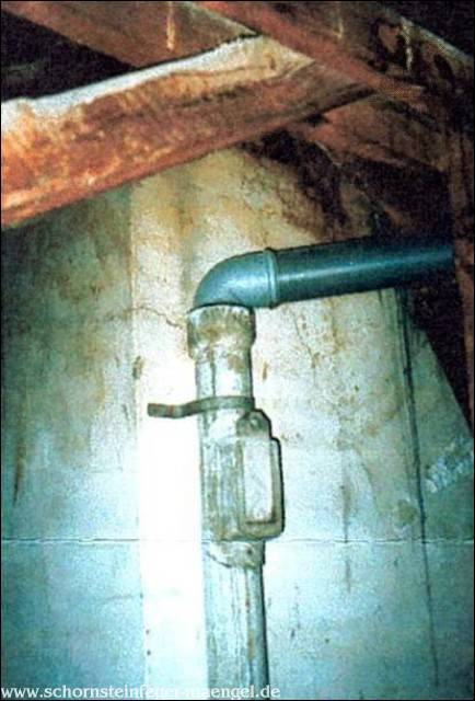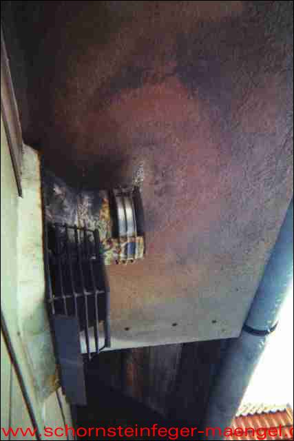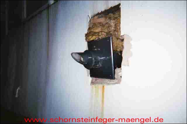 Schornsteinwange völlig durchnässt, da Abgasleitung undicht! |
