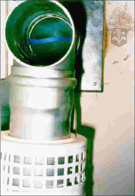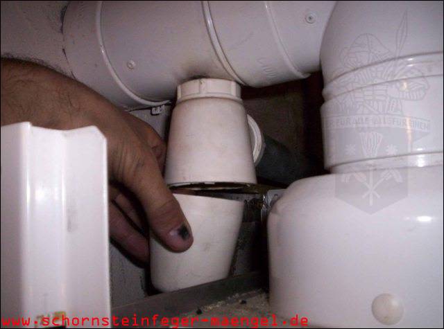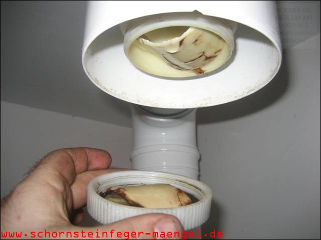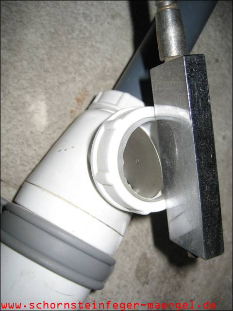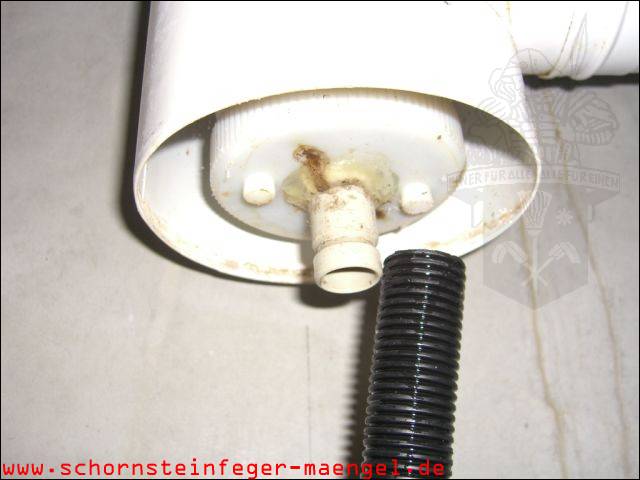 Abgasaustritt aus dem Siphon, da nach Wartung nicht mit Wasser gefüllt! |