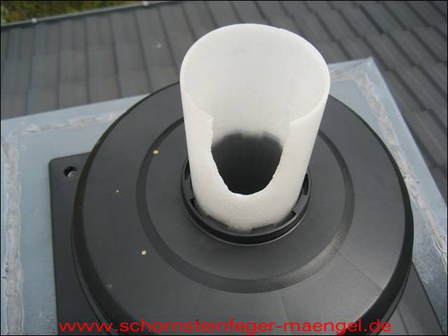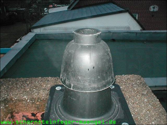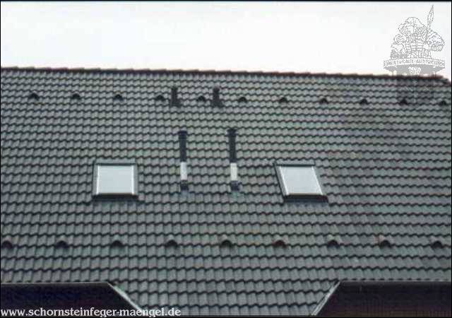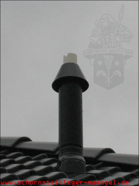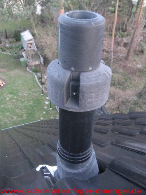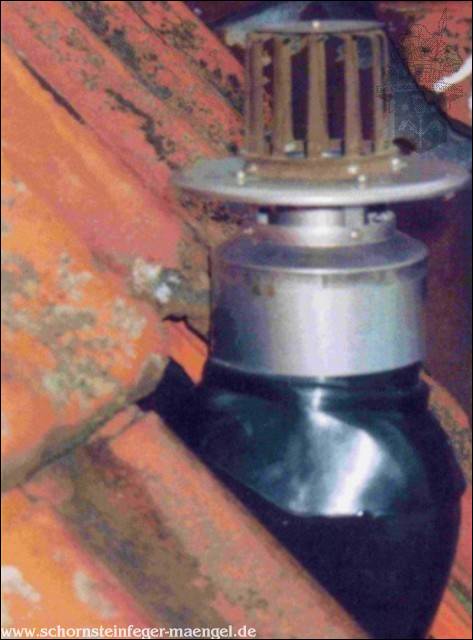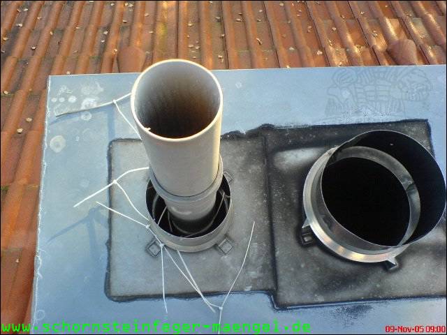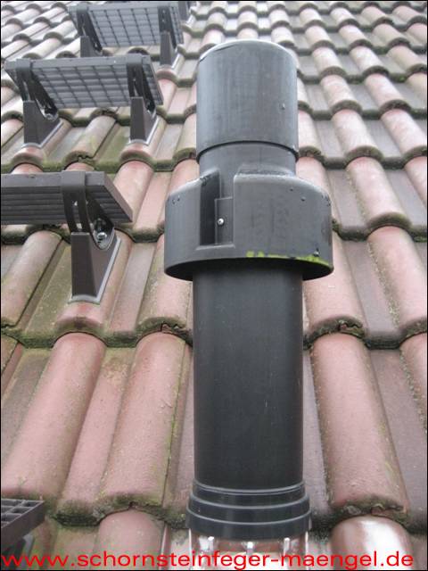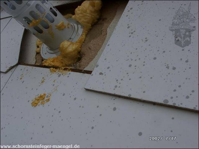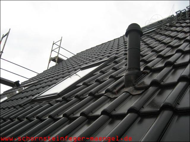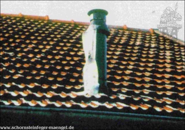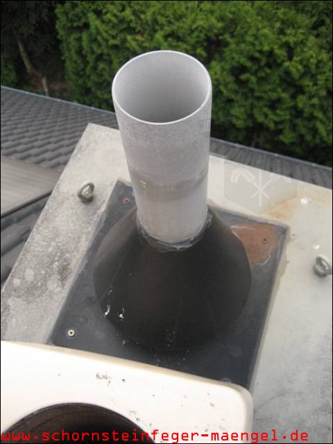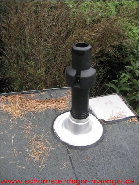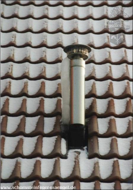Vom Dachdecker "fahrlässig" abgedeckte Abgasleitung! |