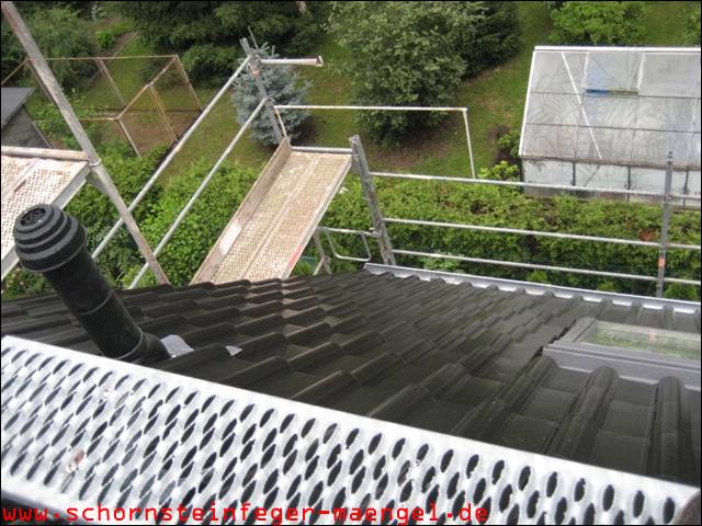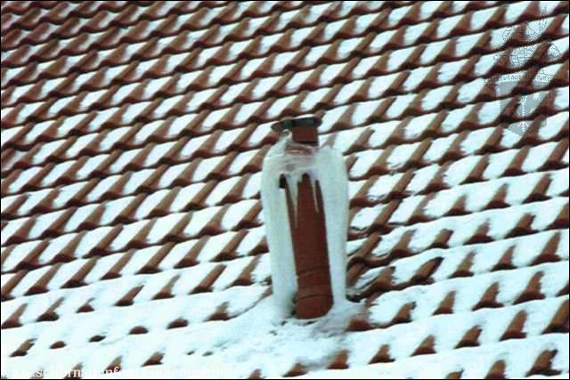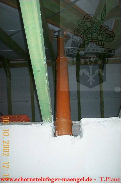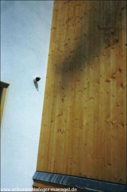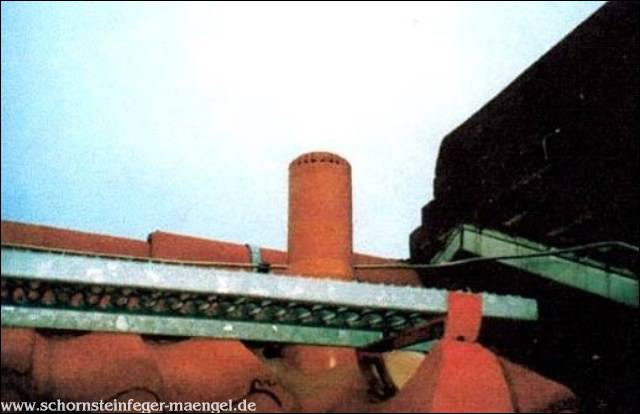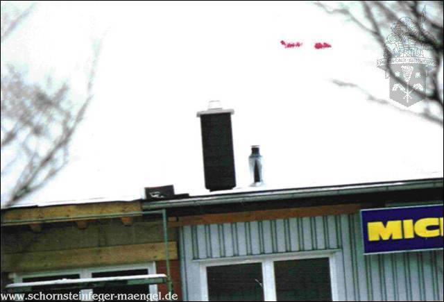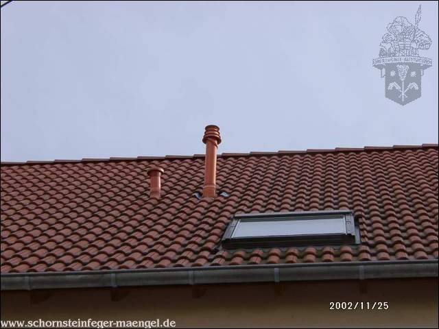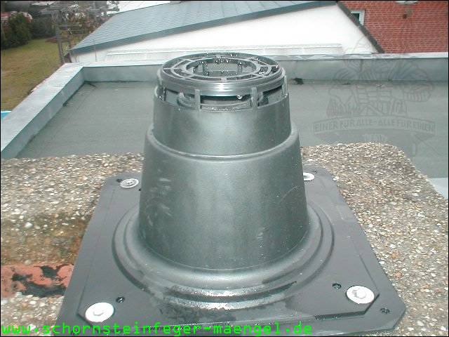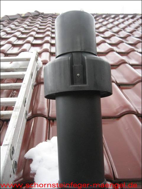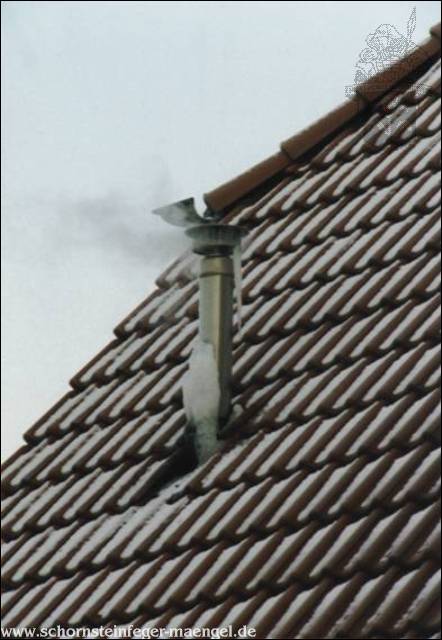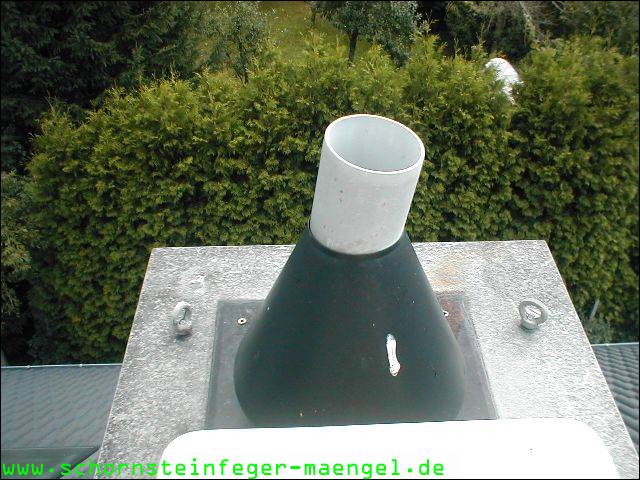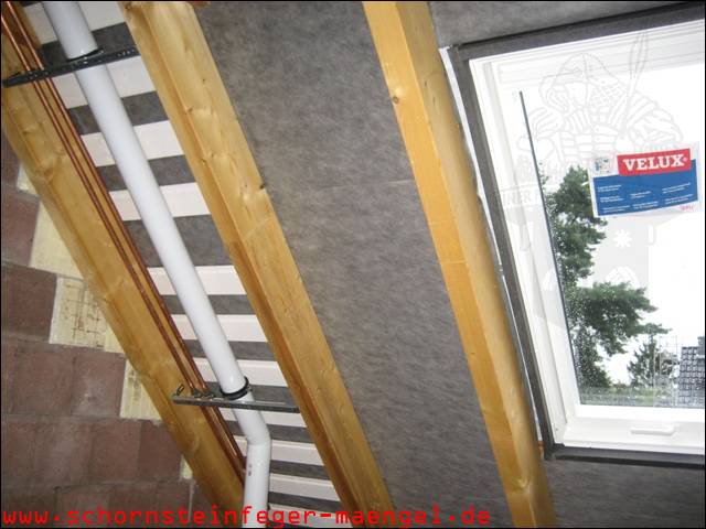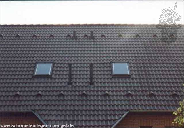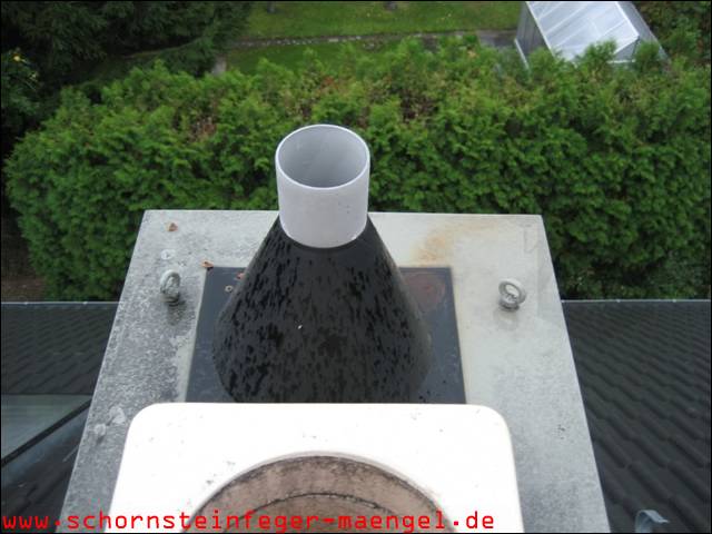 Vom Dachdecker "fahrlässig" abgedeckte Abgasleitung! |