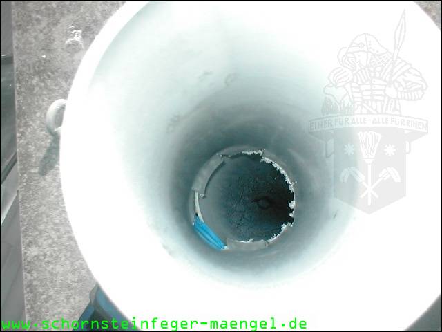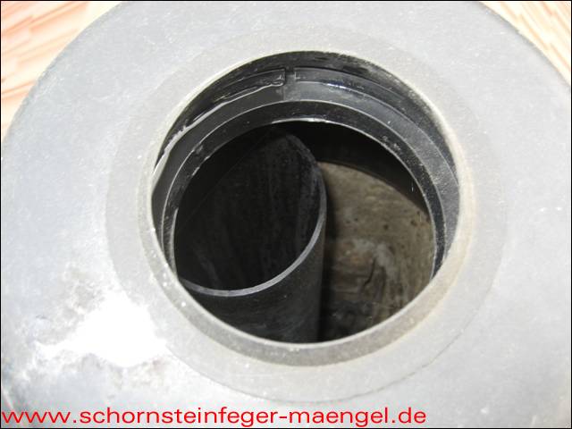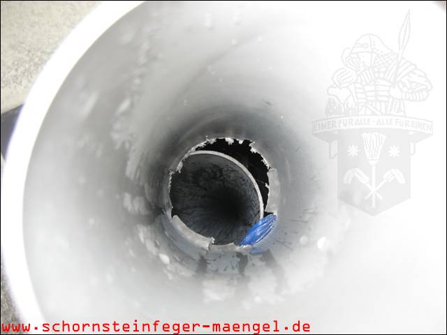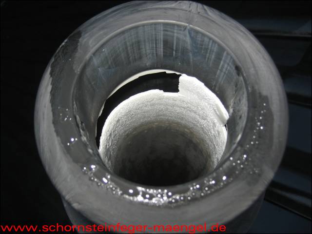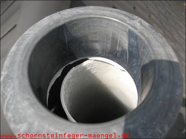 Edelstahlrohr im Schornstein auseinander - Schornstein stark durchfeuchtet |
