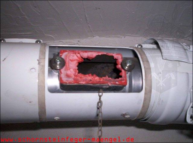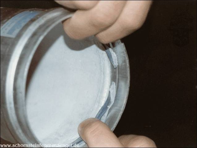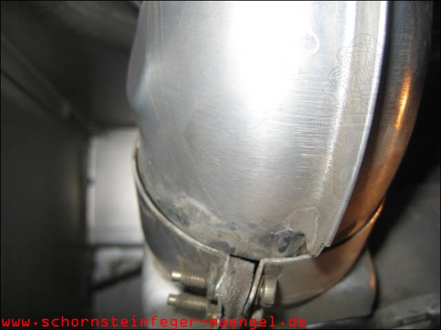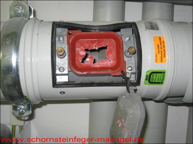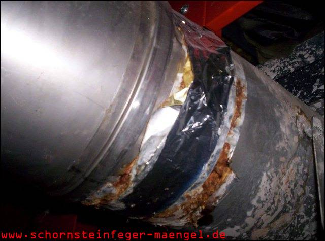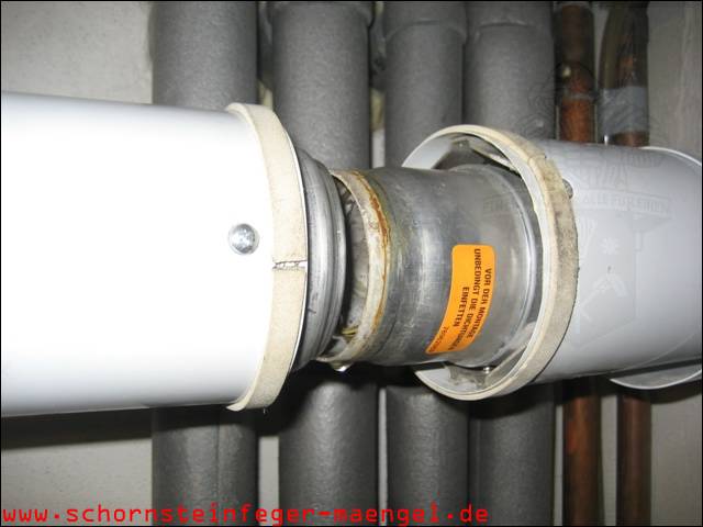 typischer Mangel einer zertifizierten -Abgasleitung - Dichtung der