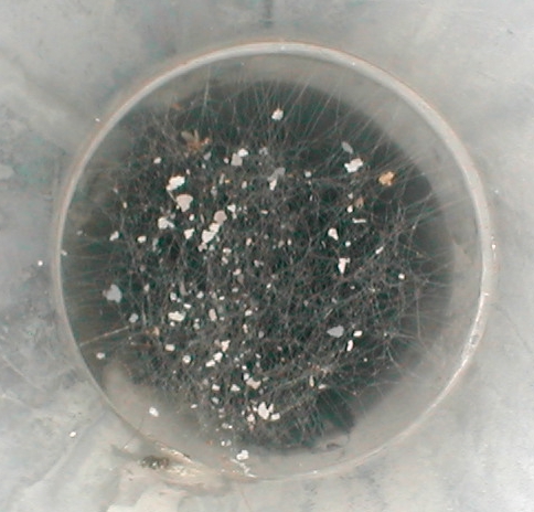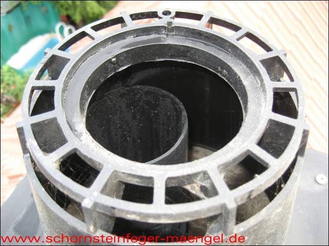 Spinnenweben an der Mündung einer Brennwertabgasleitung - vor und nach der