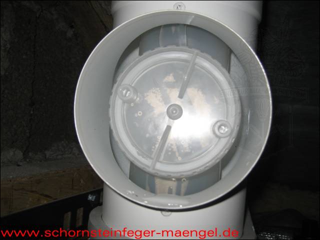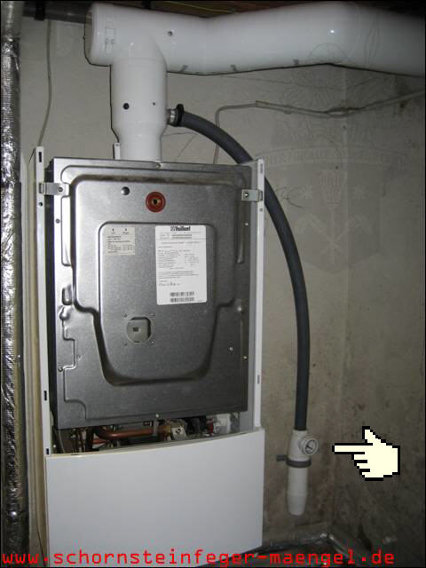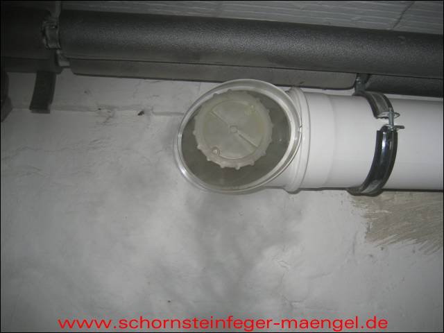 steht in der Abgasleitung, da das Gefälle der Abgasleitung nicht in Richtung