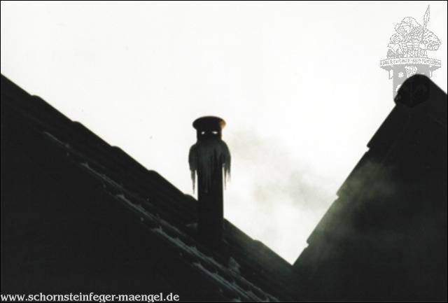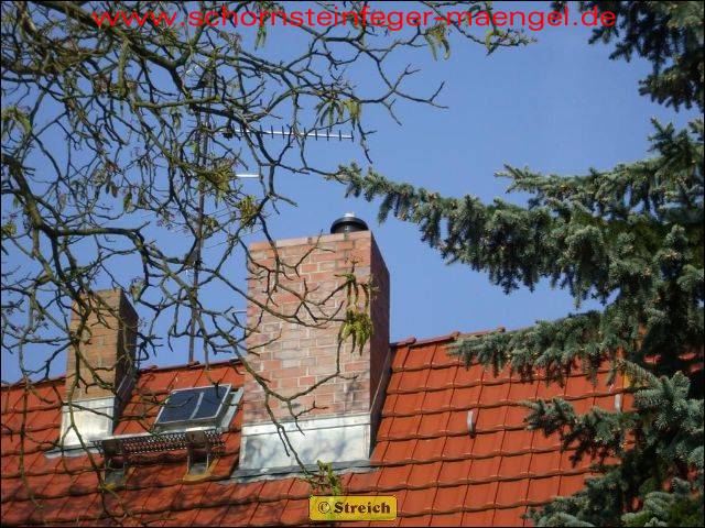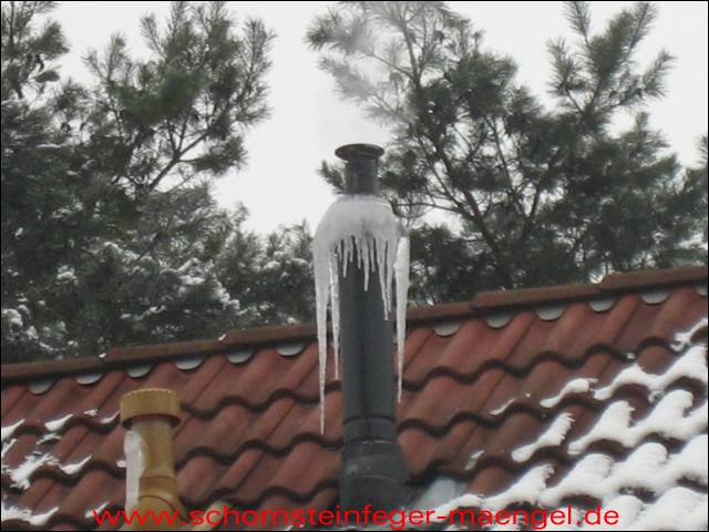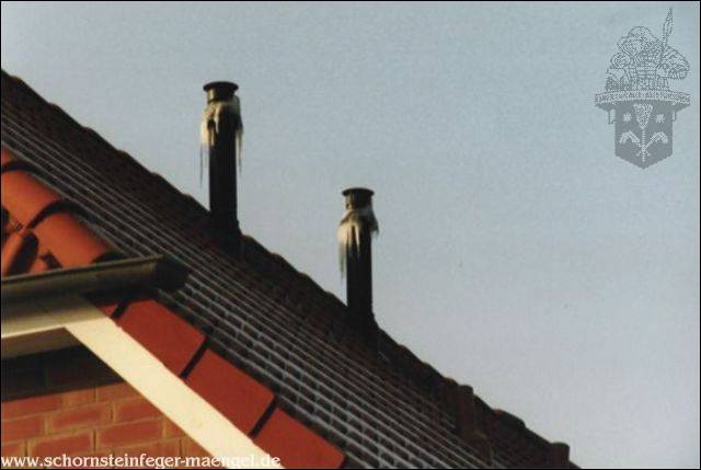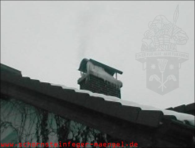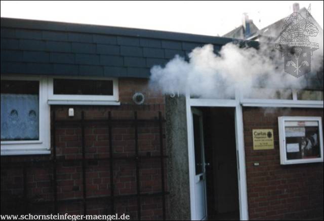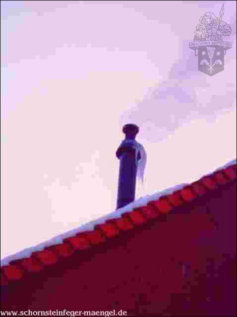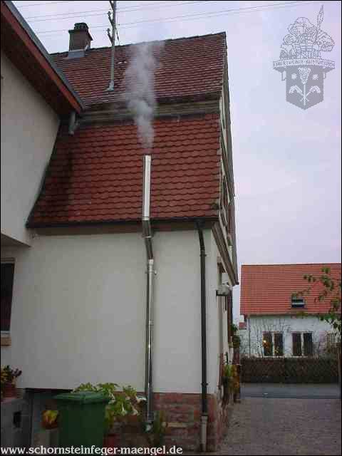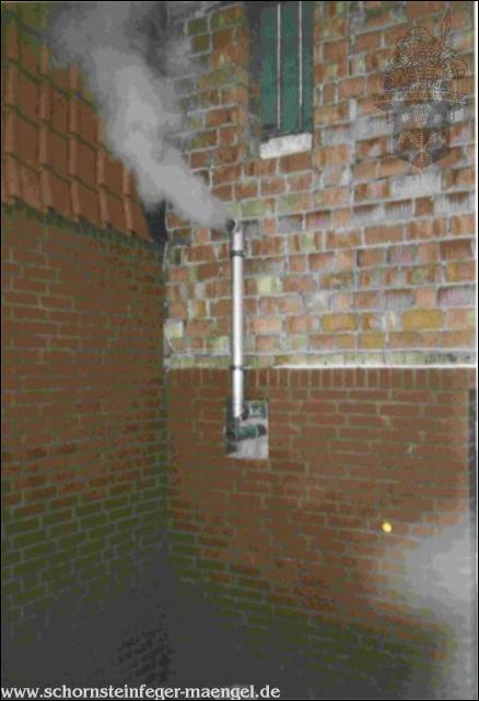undichte Schornsteingruppe mit benachbarten Kachelofen - Rauchgas im
