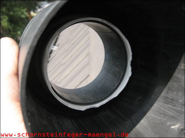 in Kunststoffabgasleitung wurde hier mit Silikon einfach nur zugeschmiert!