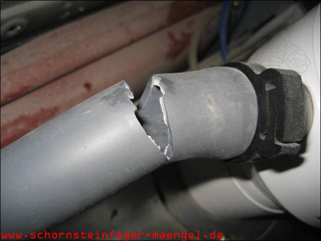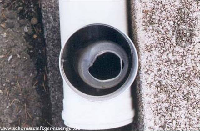 Trabs der Abgasleitung abgerissen - Abgas- und Kondensataustritt |