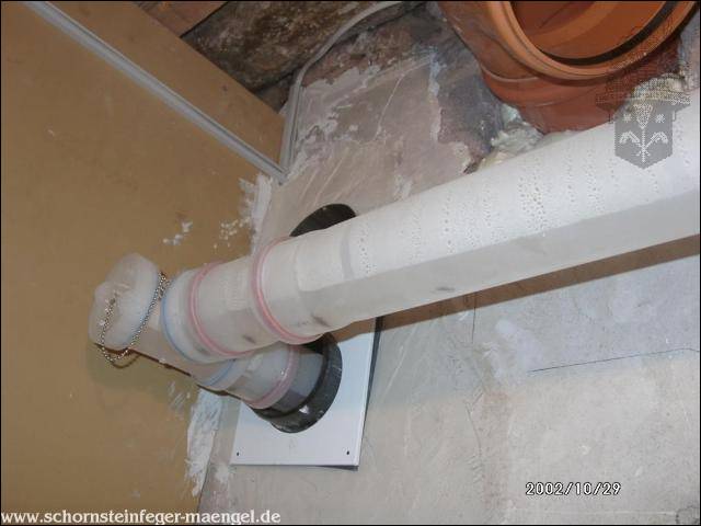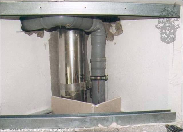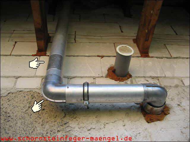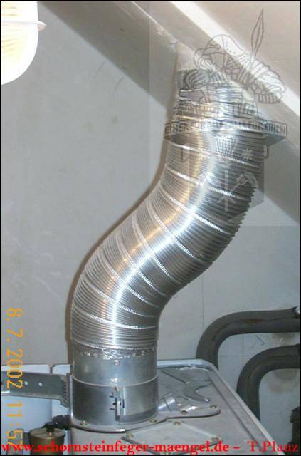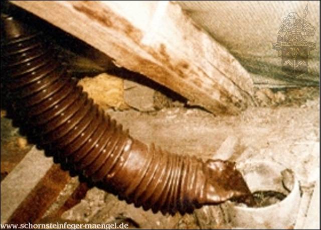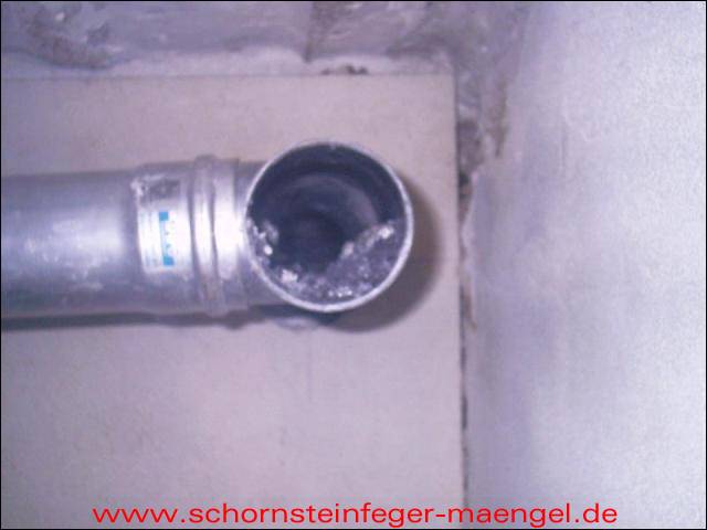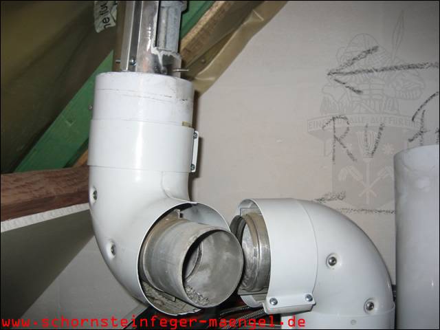 Abgasleitung im gezogenen Schornstein geknickt - hier hätte man eine