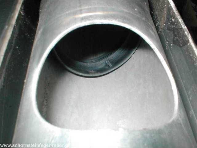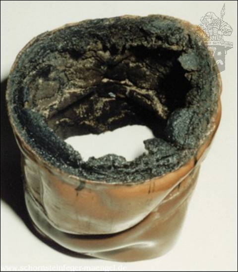 Abgasleitung im 90 ° Bogen stark verschmutzt - fast verstopft! |