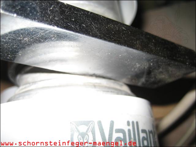 Heizwerttherme - Nieten des Abgasstutzens rosten durch. Abgasleitung undicht