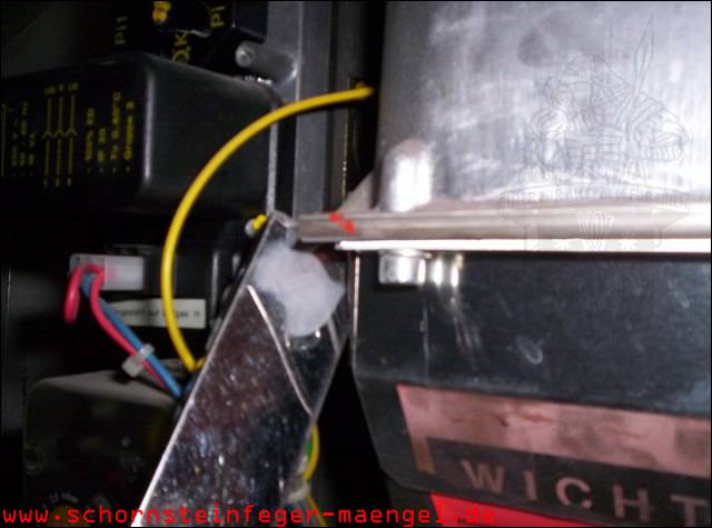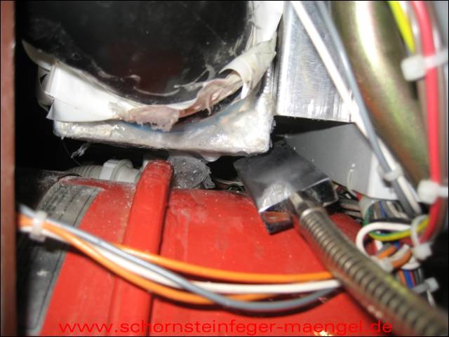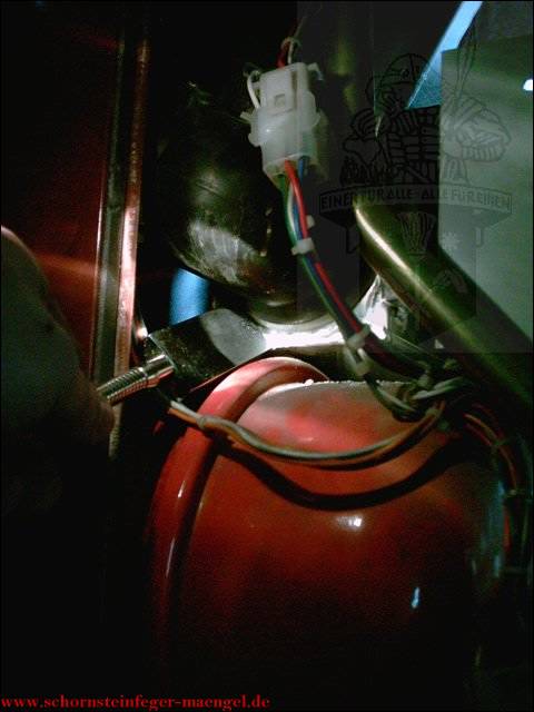 innerhalb der Feuerstätte am Abgasstutzen, vermutlich Dichtung verschlissen!