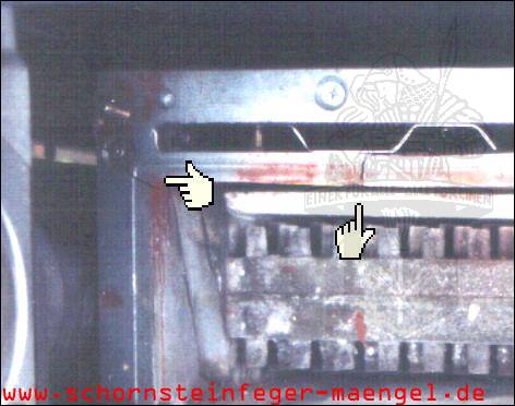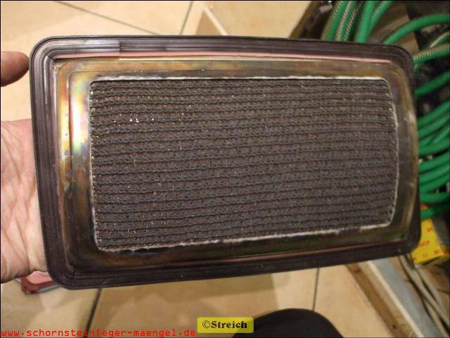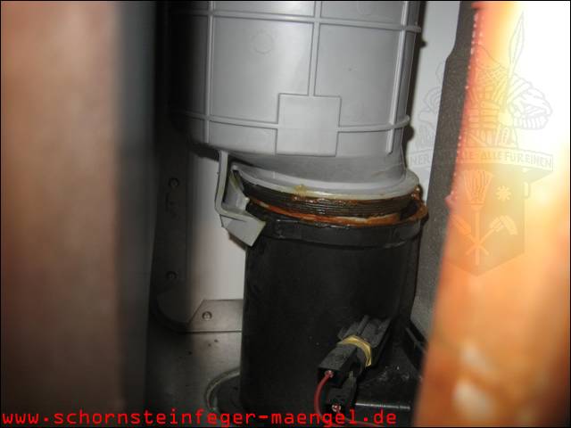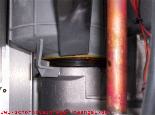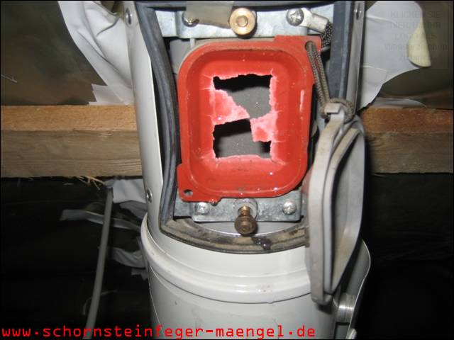 innern der Feuerstätte, da Dichtung des Abgasrohres defekt! |