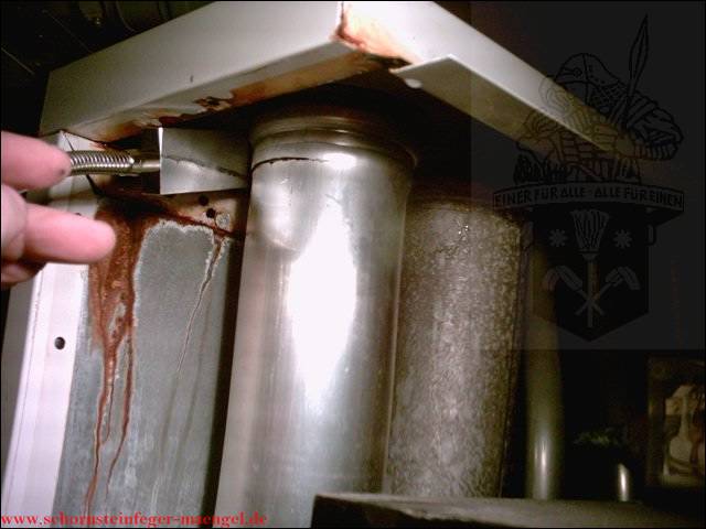 Abgasaustritt innerhalb der Feuerstätte, da Abgasleitung durchgerostet!