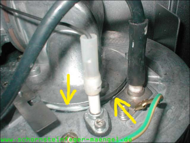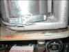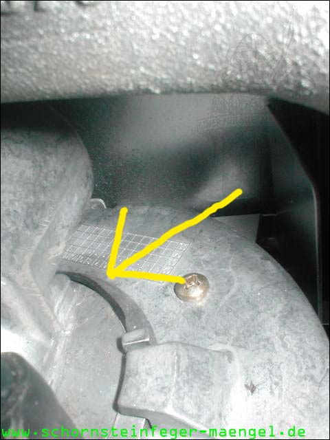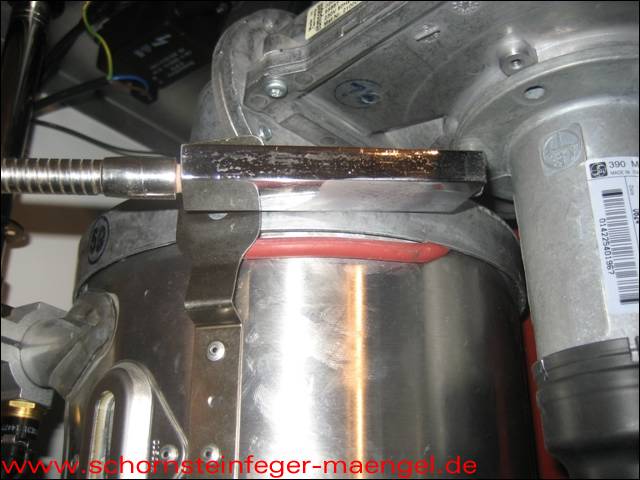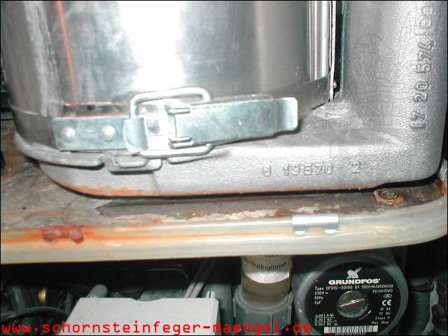 Abgasaustritt unmittelbar am Schauglas - Schellenband stark korrodiert! |