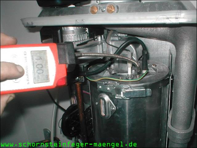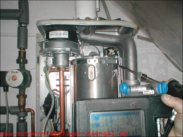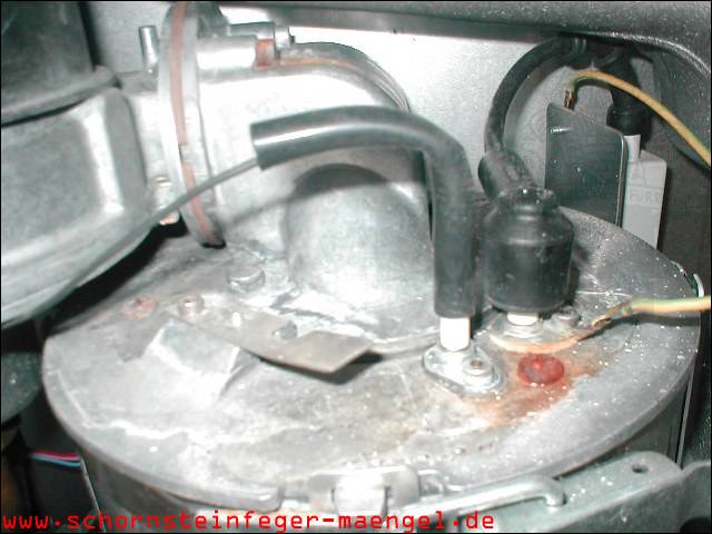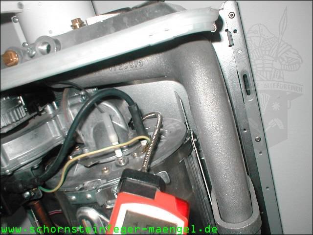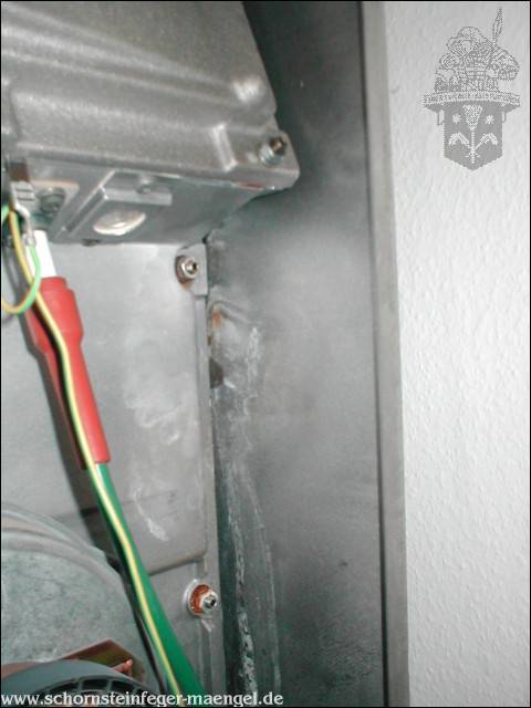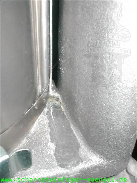 innerhalb der Feuerstätte, da Dichtung im Abgasstutzen defekt! |