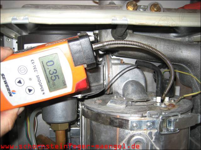 Erdgasaustritt innerhalb der Feuerstätte am Brenneranschluß, da nach
