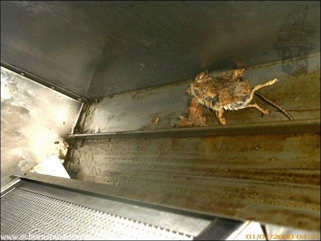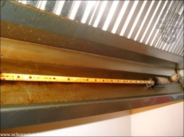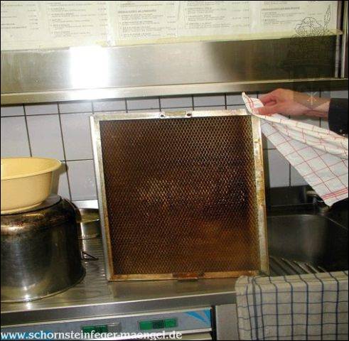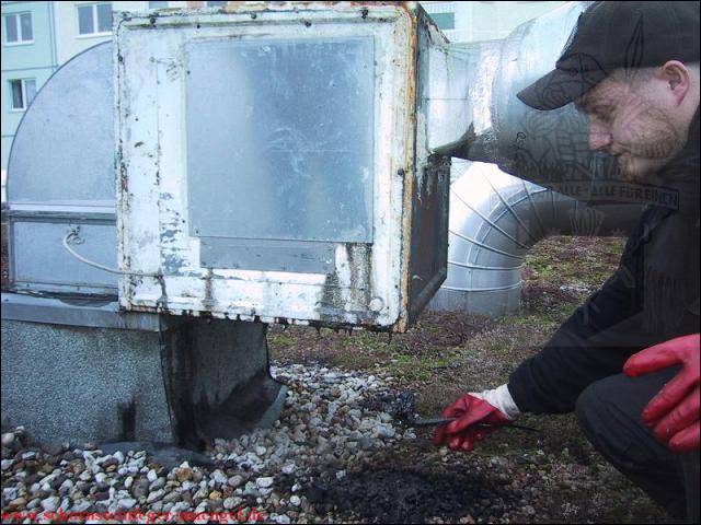 eine angeblich regelmäßig gewartete gewerbliche Dunstabzugsanlage - sehr stark verschmutzt - Brandgefahr!