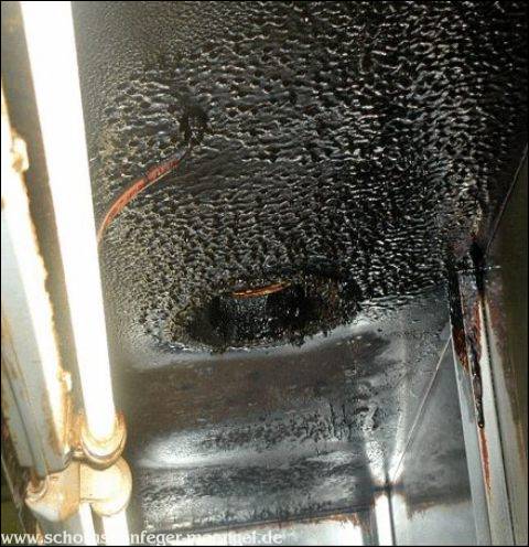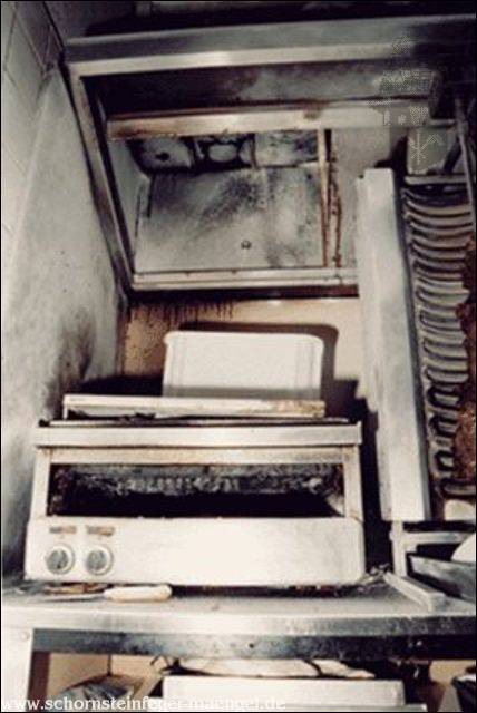 abgebrannte Dunstabzugsanlage, da nicht regelmäßig gereinigt!