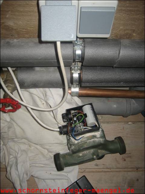 und davor dem Brennwertgerät liegende Umwälzpumpe steht noch voll