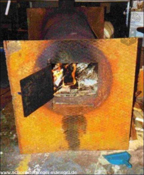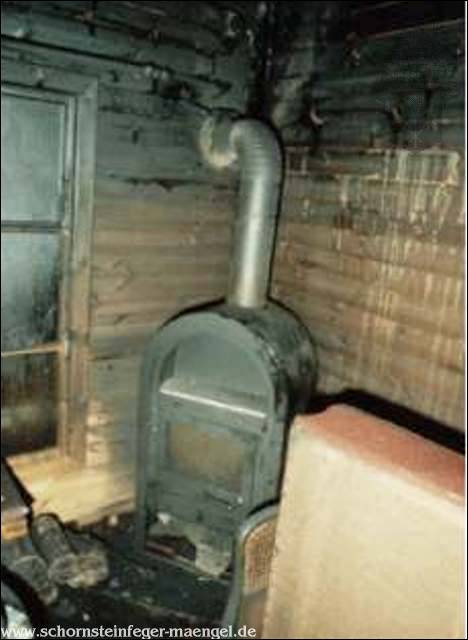 hohe Brandgefahr, da Rauchrohr und Feuerstätte zu dicht an der