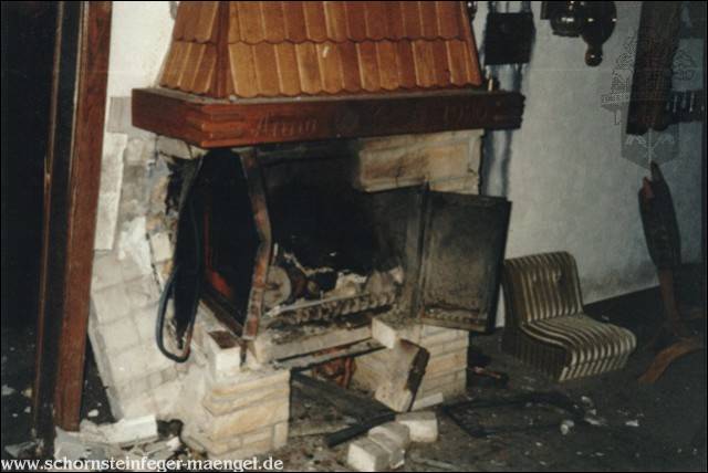 selbst gebaute Kamin mit zu wenig Abstand zum Holz! |