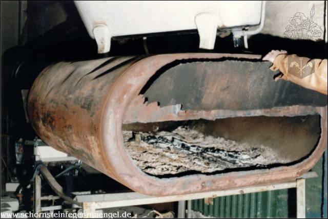 Abgasstutzen eines Kohlezentralheizkessels abgerostet - Abgas-,