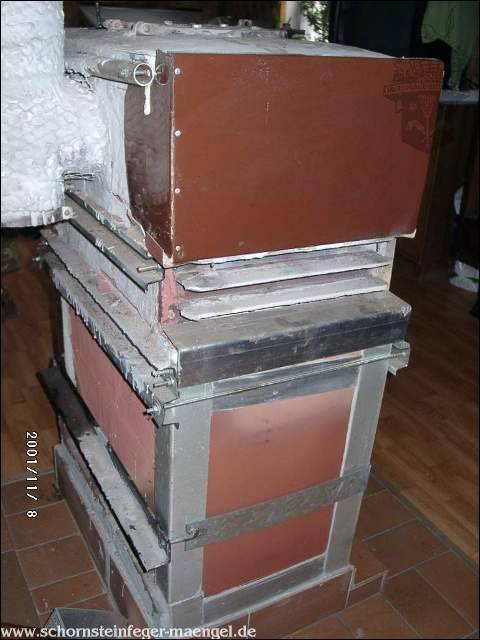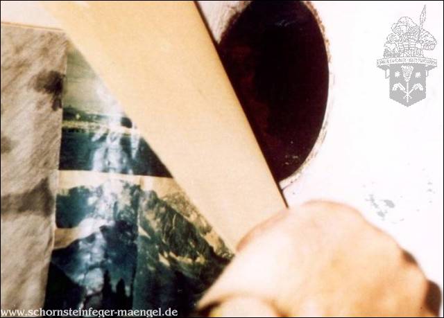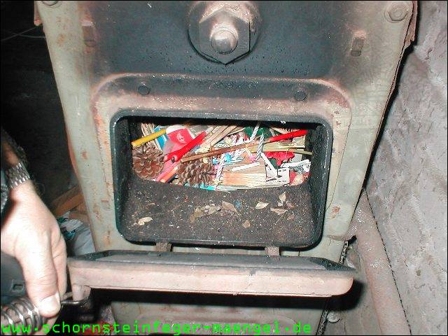 Abnahme eines Kaminofens - alter Anschluss wurde mit Zeitungen so