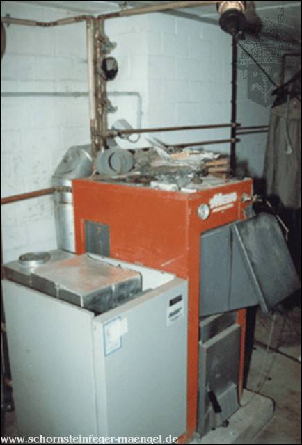 Ölheizung und Holzvergaserkessel! Ausbruch eines Feuers! Holzvergaserkessel