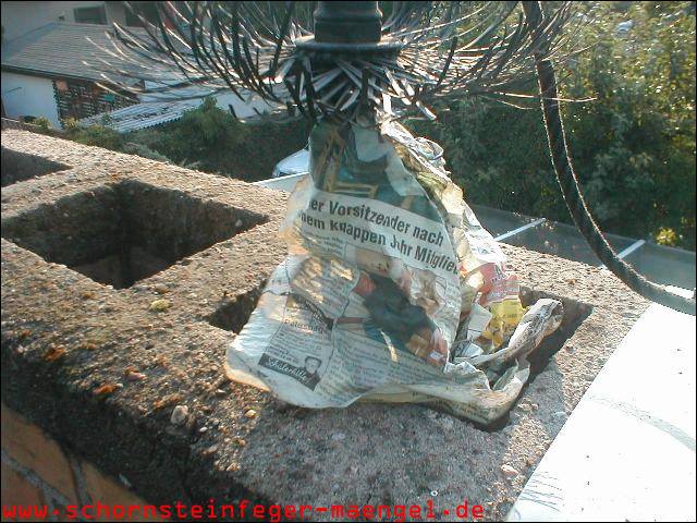 zugestopft, dass der Schornstein oberhalb des Anschlusses verstopft