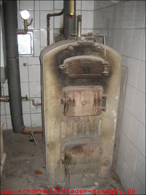 verschmutze Heizgaszüge eines Kohlekessels! |