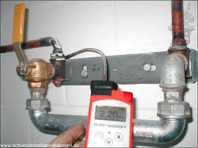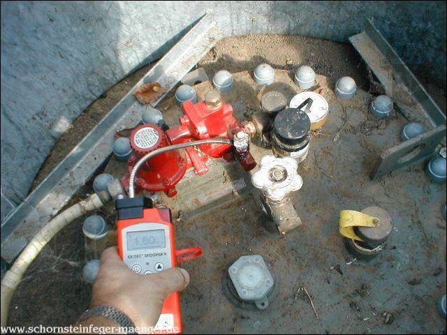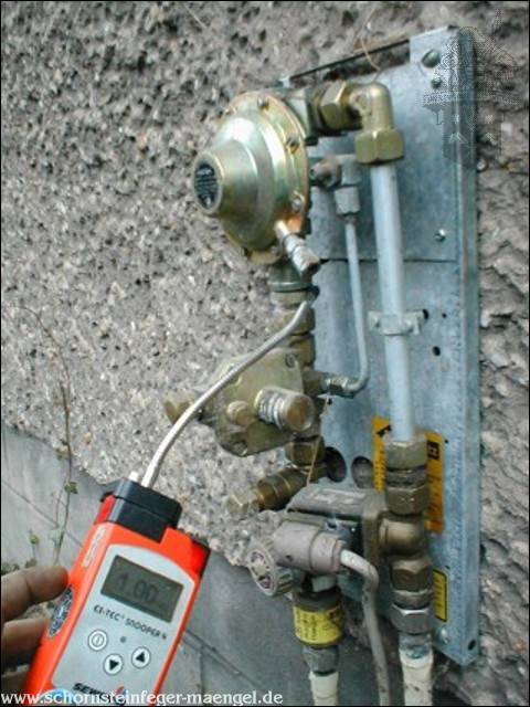 Endabnahme bei einer neu errichteten Flüssiggasbrennwertanlage 0,35 Vol % an der Zählerverschraubung!