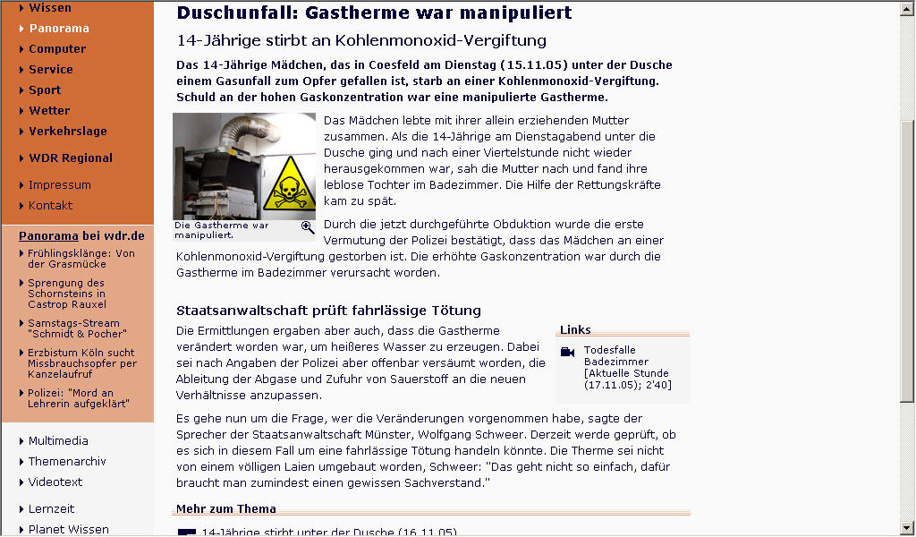 14 jährige durch eine manipulierte Gastherme bei duschen gestorben -