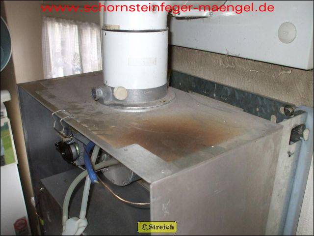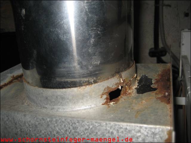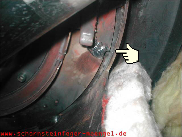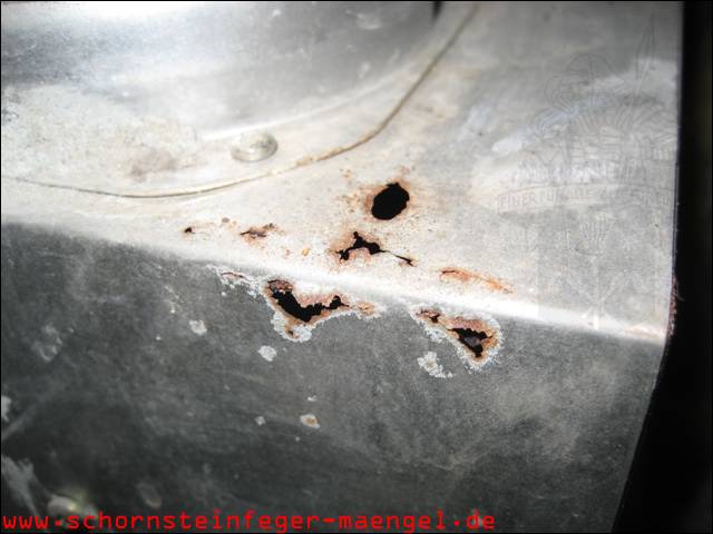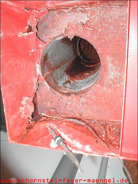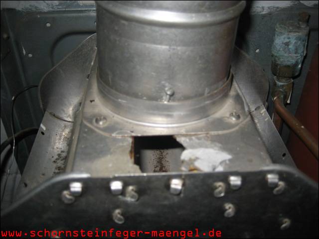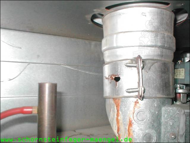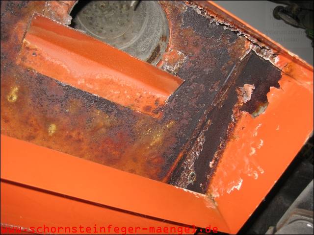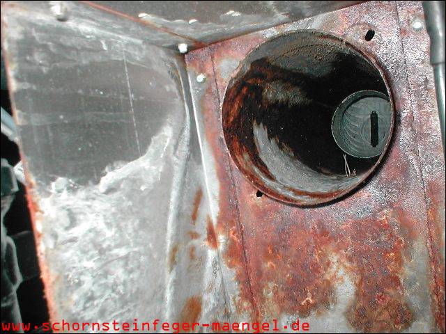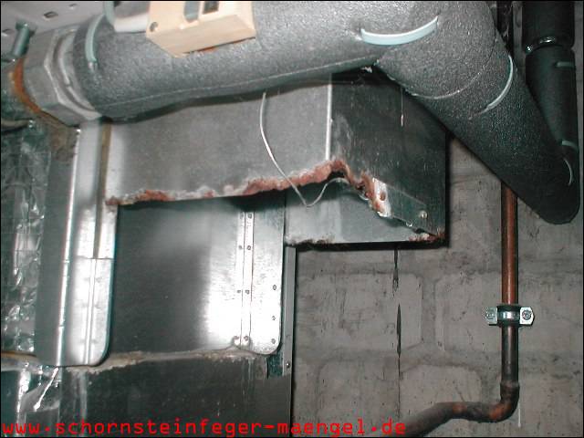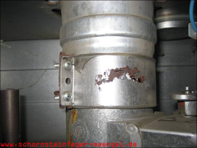 feuchter Abgasaustritt - Kesselverkleidung von innen schon angerostet! |