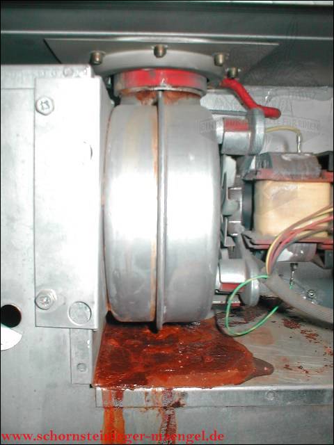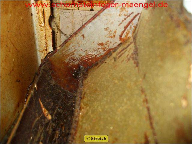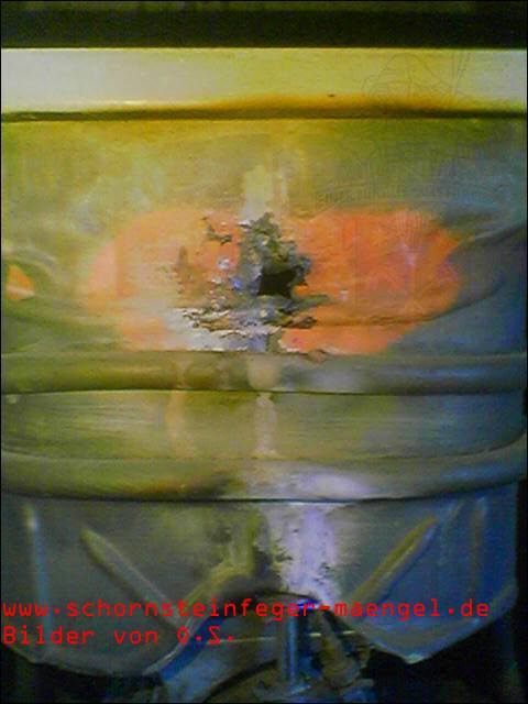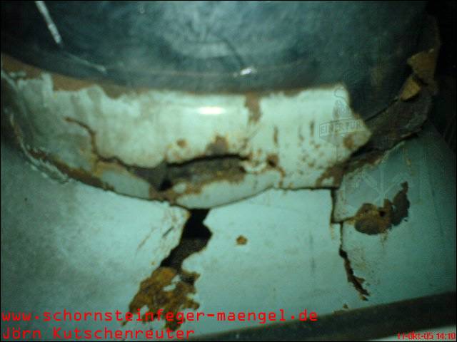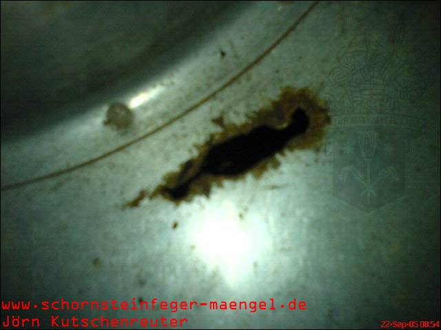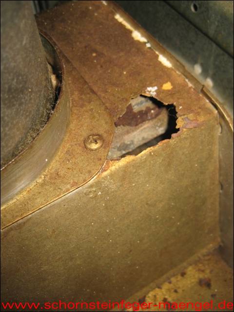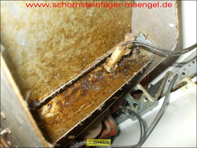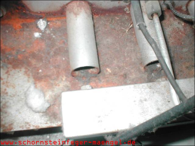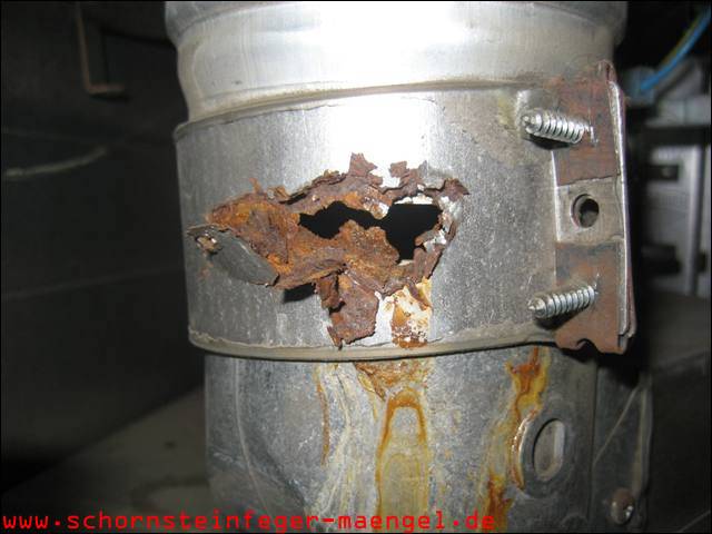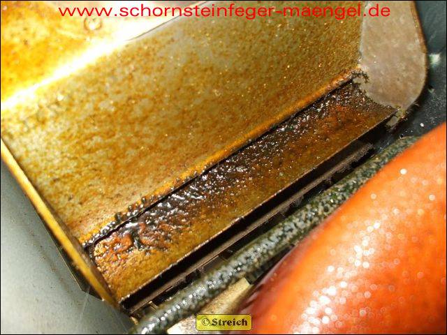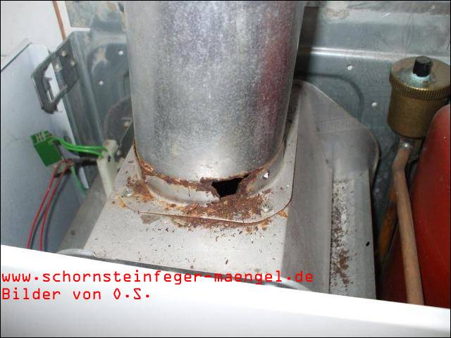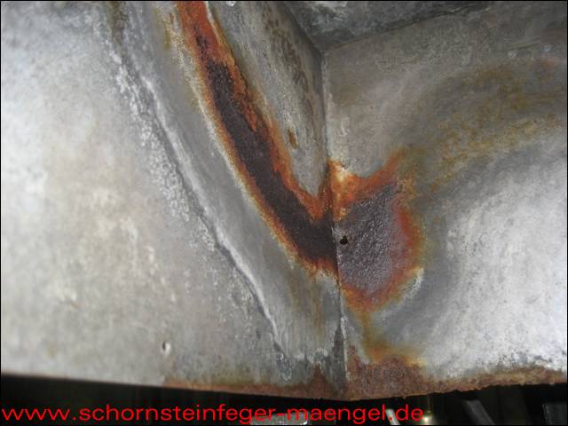 feuchter Abgasaustritt - Kesselverkleidung von innen schon angerostet! |
