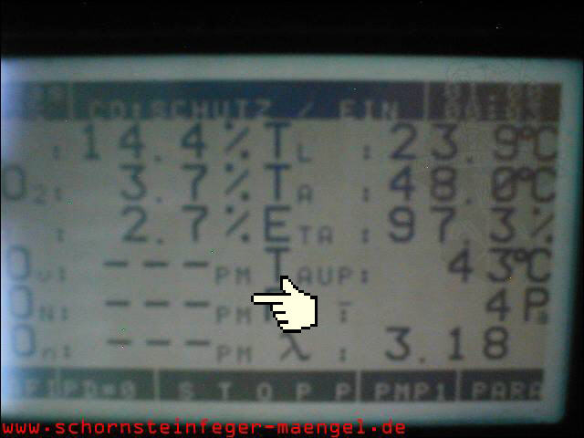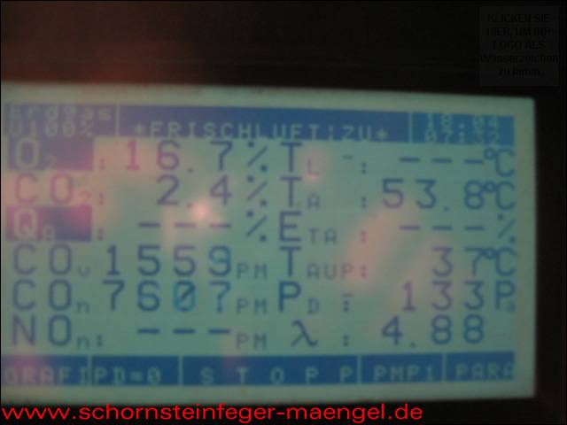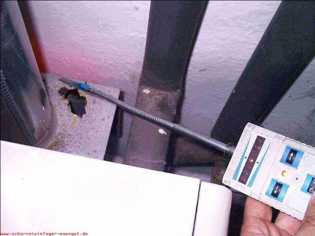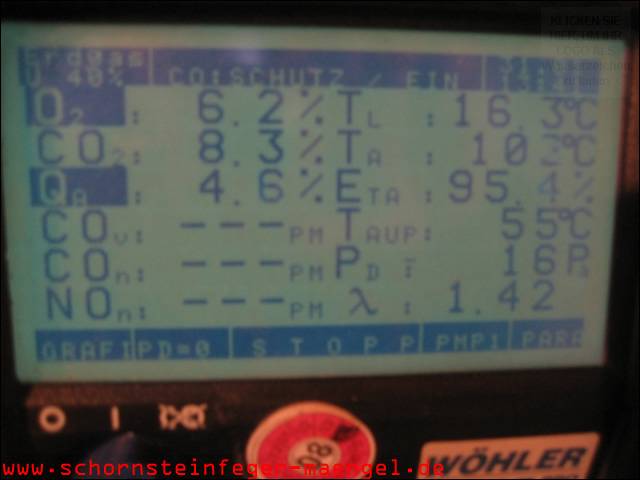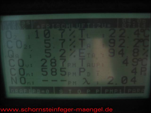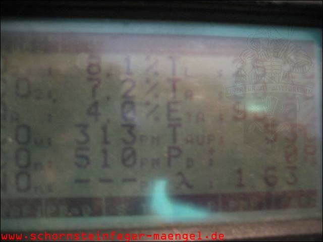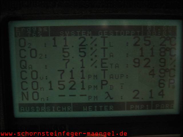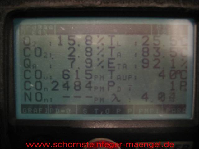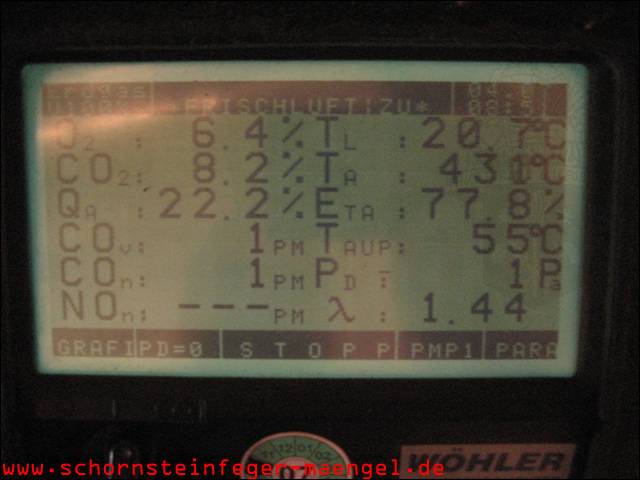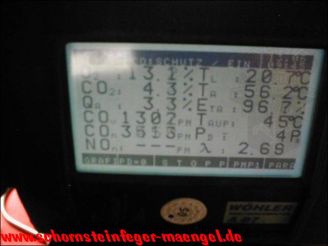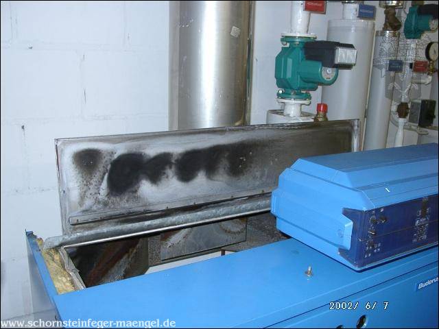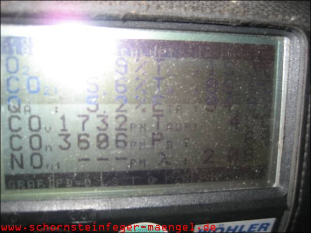 überhöhter Kohlenmonoxidausstoß mit Abgasaustritt, da stark verschmutzt! |