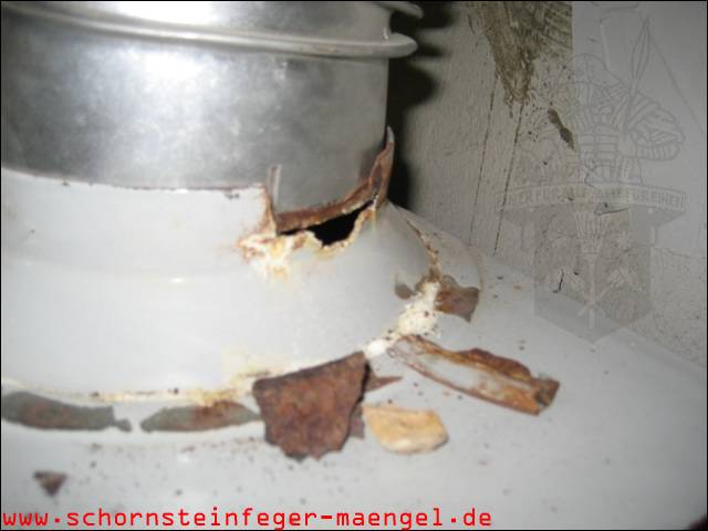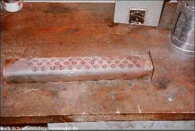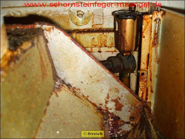 stark verrostet Strömungssicherung mit Abgasaustritt |