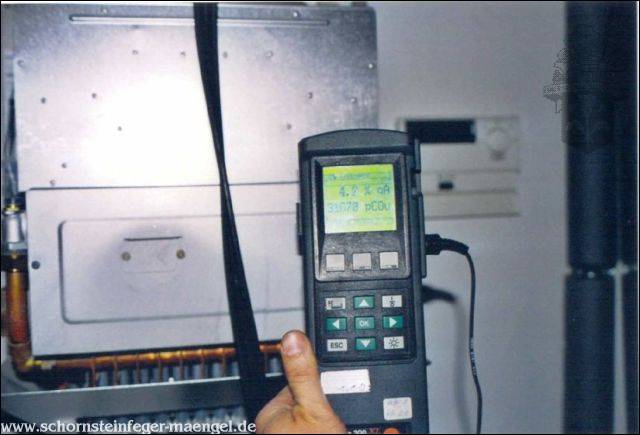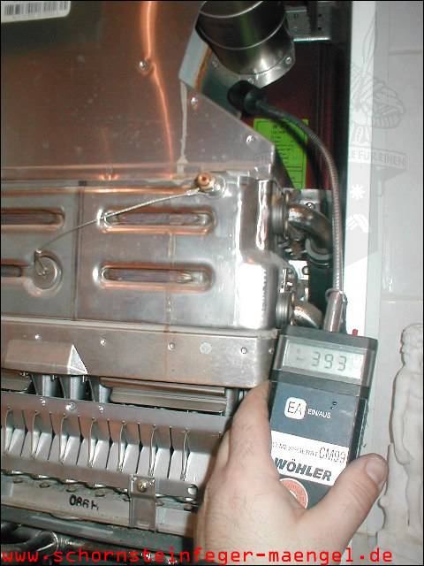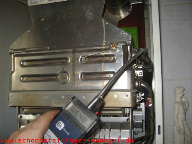 Abgasaustritt am Wärmetauscher einer Kombitherme mit > 300 ppm CO |