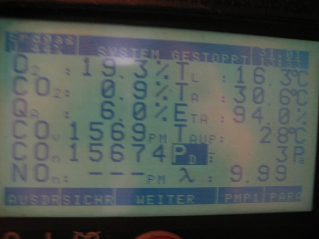Ringspaltmessung ergab einen extrem hohen CO-Gehalt in der