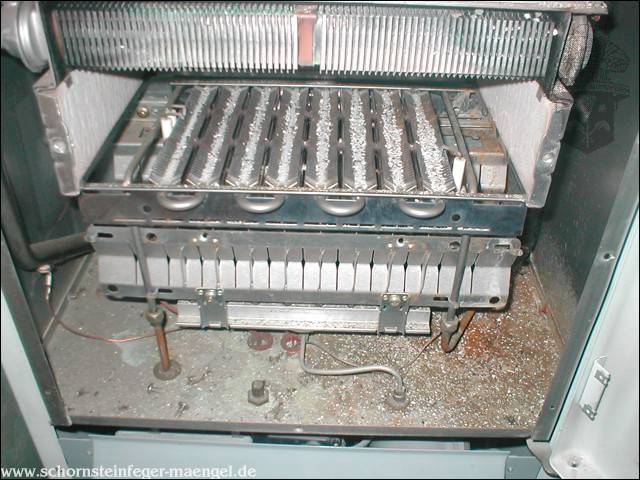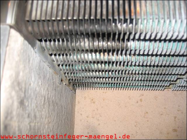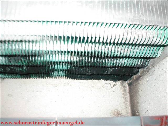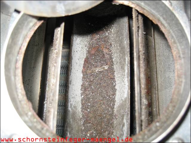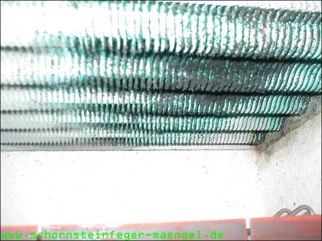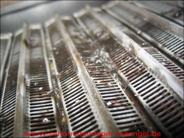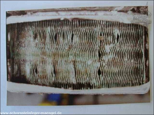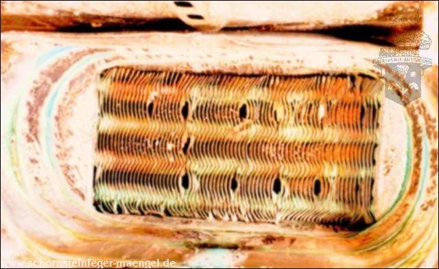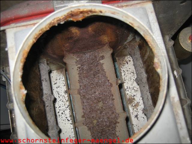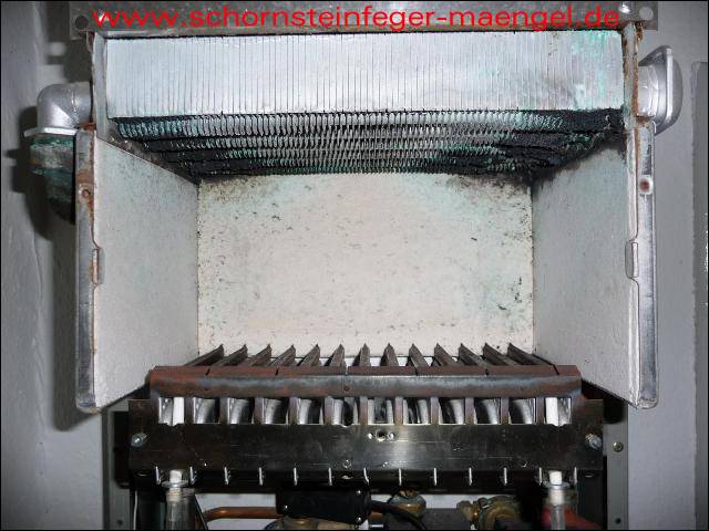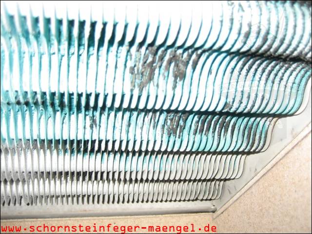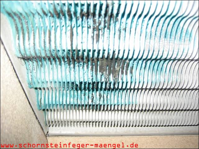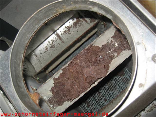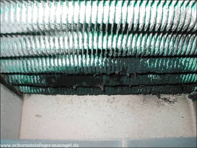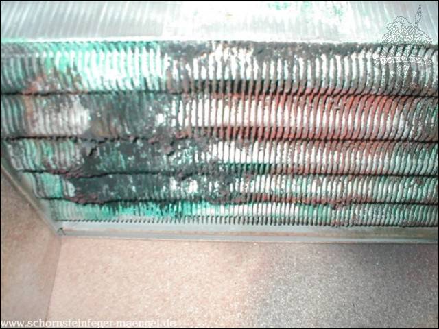 stark verschmutzte bzw. verrußte Wärmetauscher, obwohl gerade zuvor