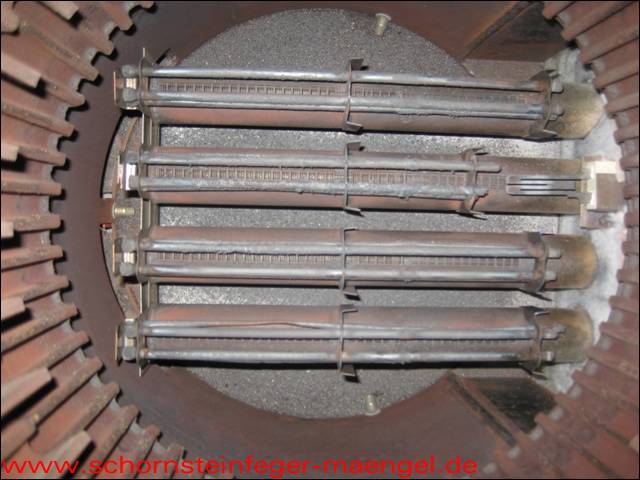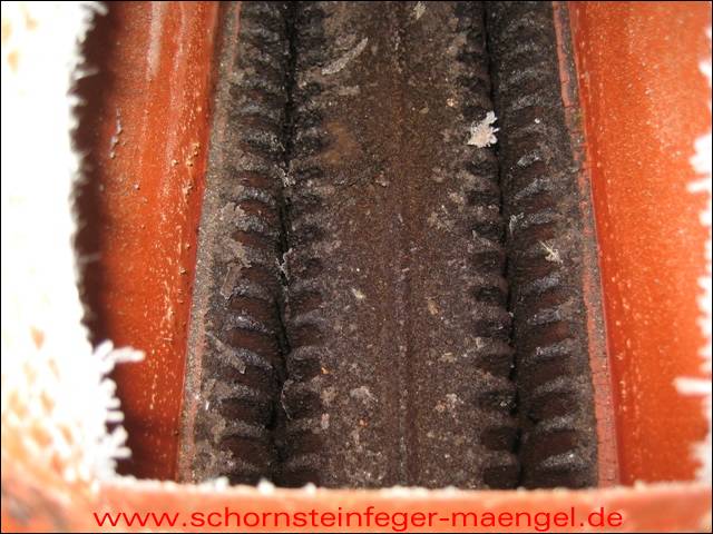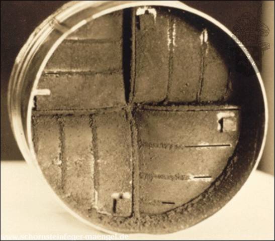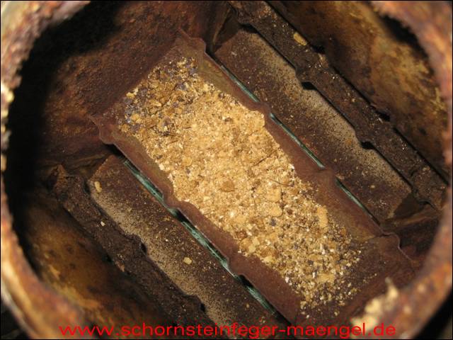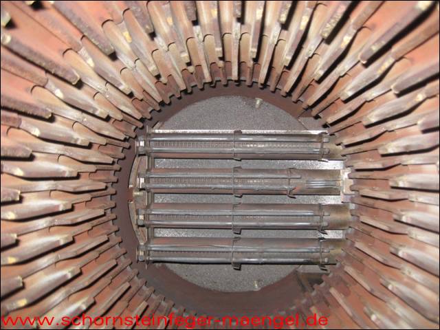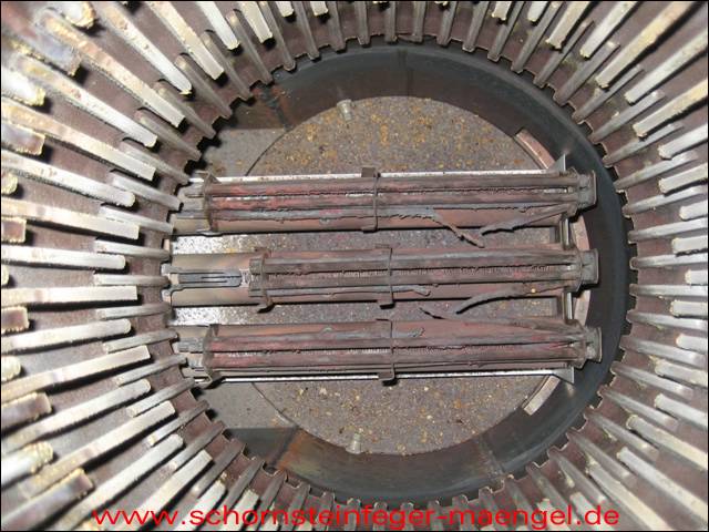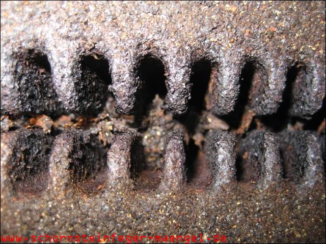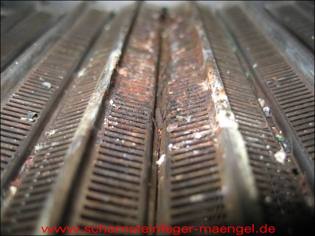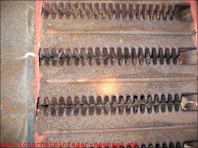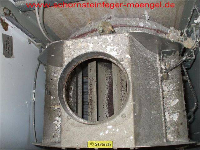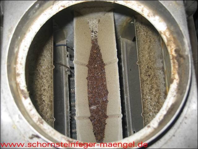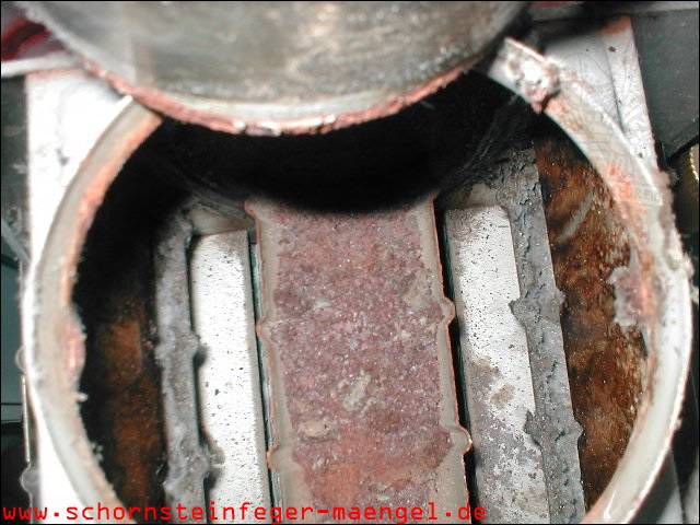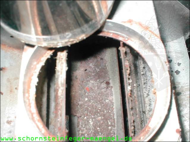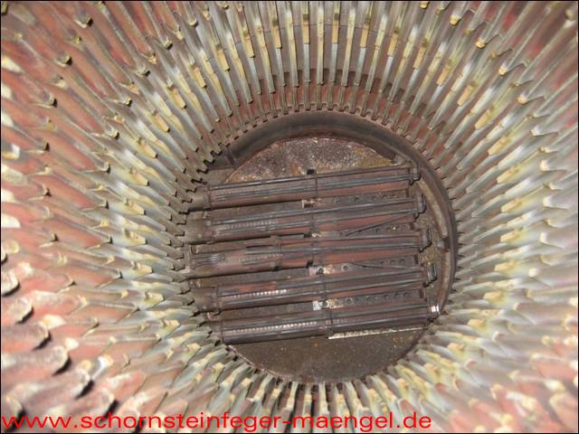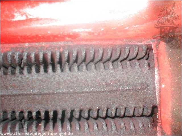 stark verschmutzte bzw. verrußte Wärmetauscher, obwohl gerade zuvor