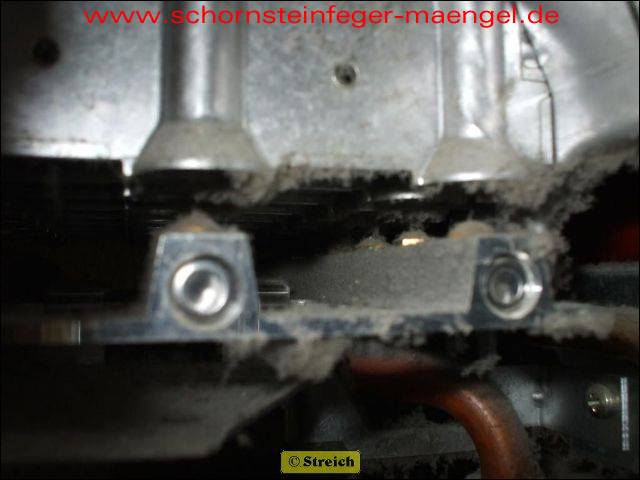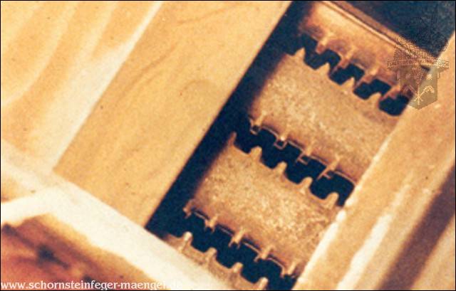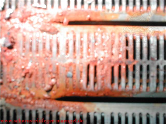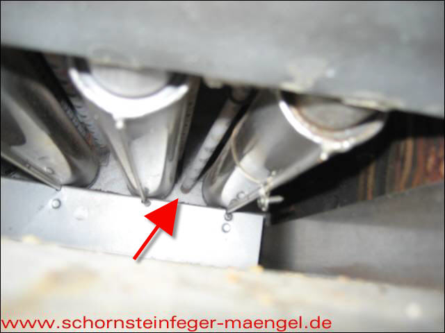Undichtigkeit zwischen den Kesselgliedern -> Abgasaustritt!!! |