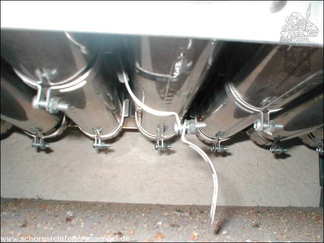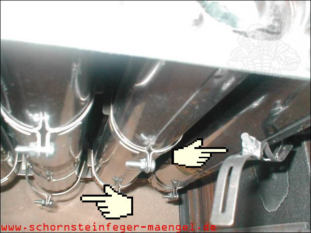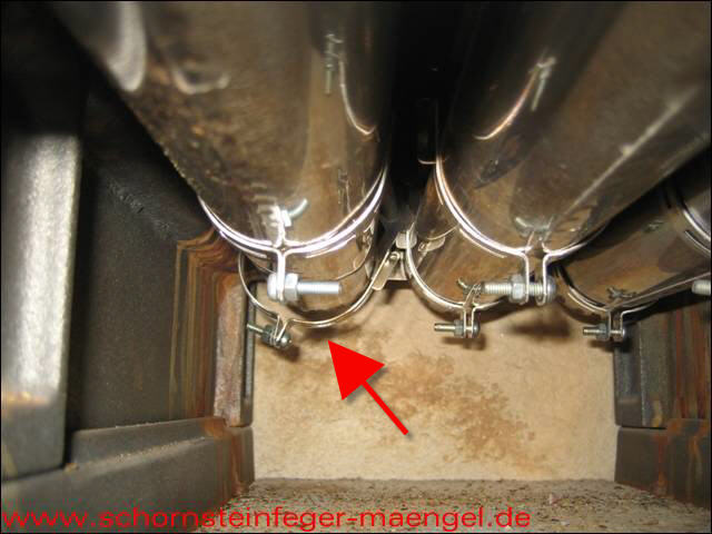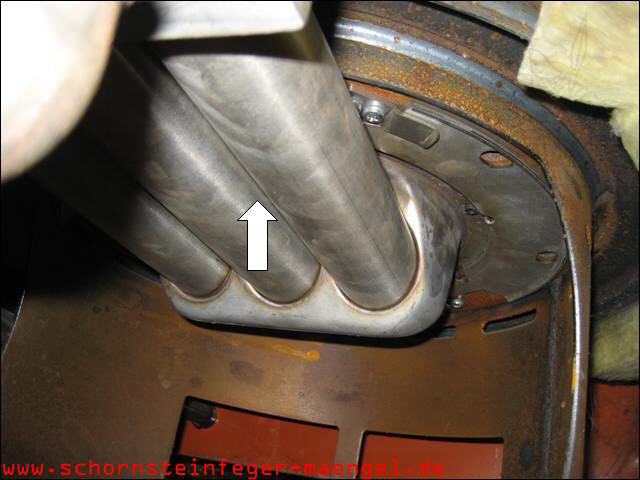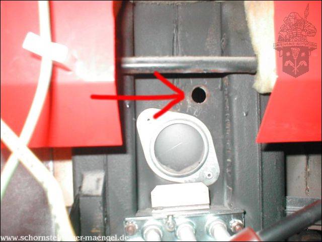 Abgasaustritt innerhalb der Feuerstätte am Abgassammler! |