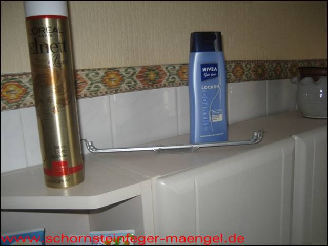 Hinweisschild, falsch montiert! Lebensgefahr, da Aufstellraum Bad! |