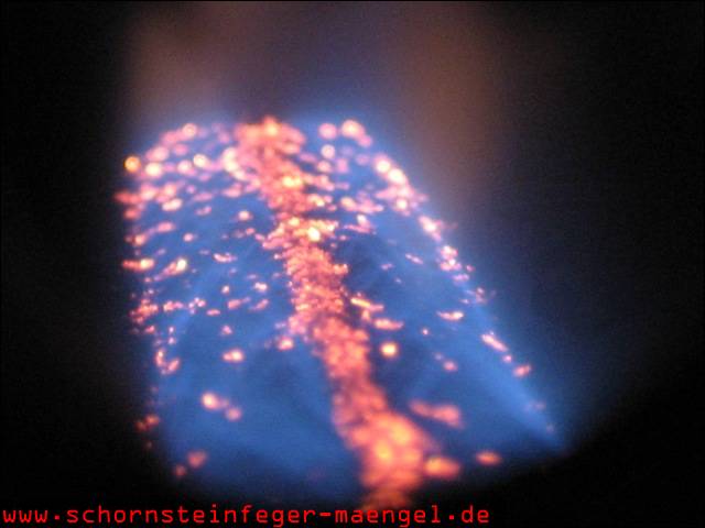 schlechtes Flammenbild mit dementsprechendem Kohlenmonoxidgehalt |
