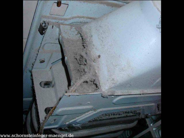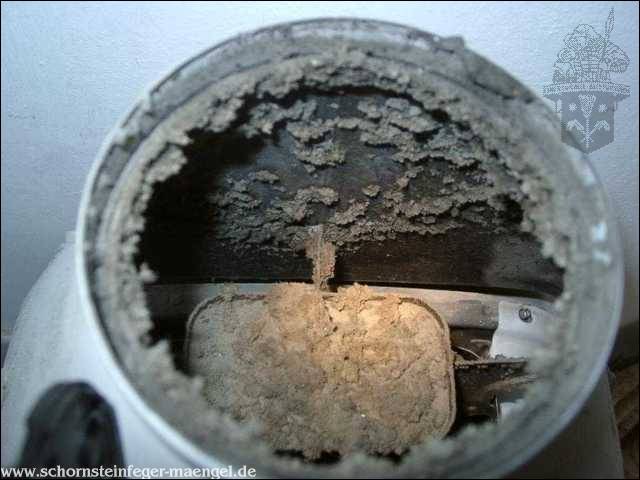 stark verschmutzte Turbotherme - Abgasleitung innerhalb der Feuerstätte