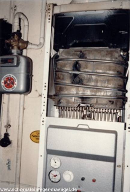 stark verschmutzte raumluftunabhängige Therme |