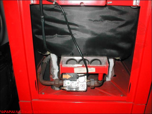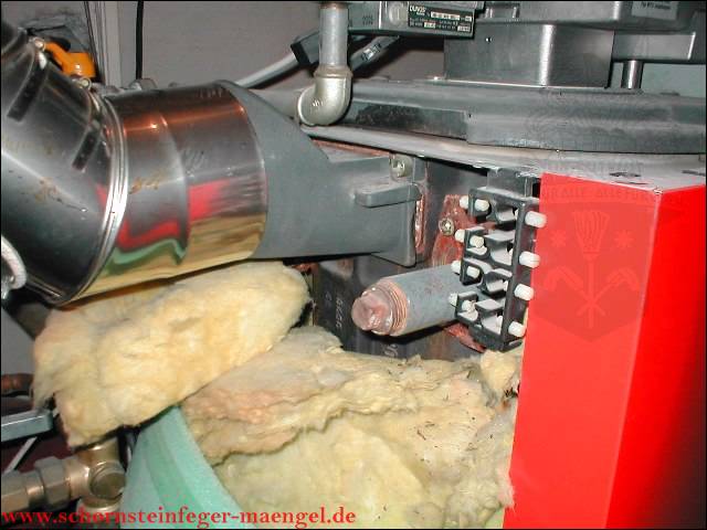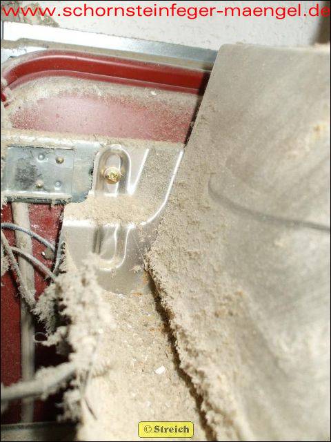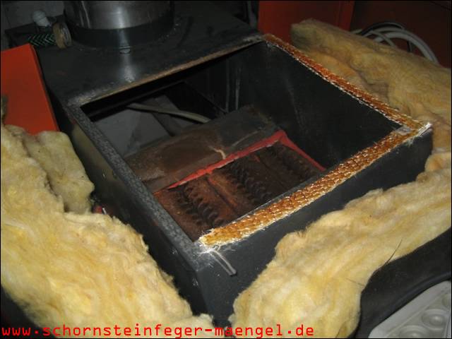 abgefallene Brennraumdämmung auf Brenner |