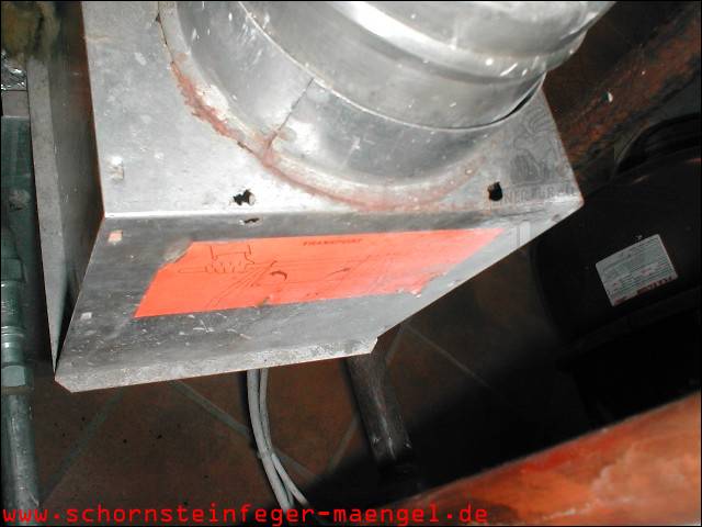 Abgasaustritt, da Nieten der Strömungssicherung abgerostet! |